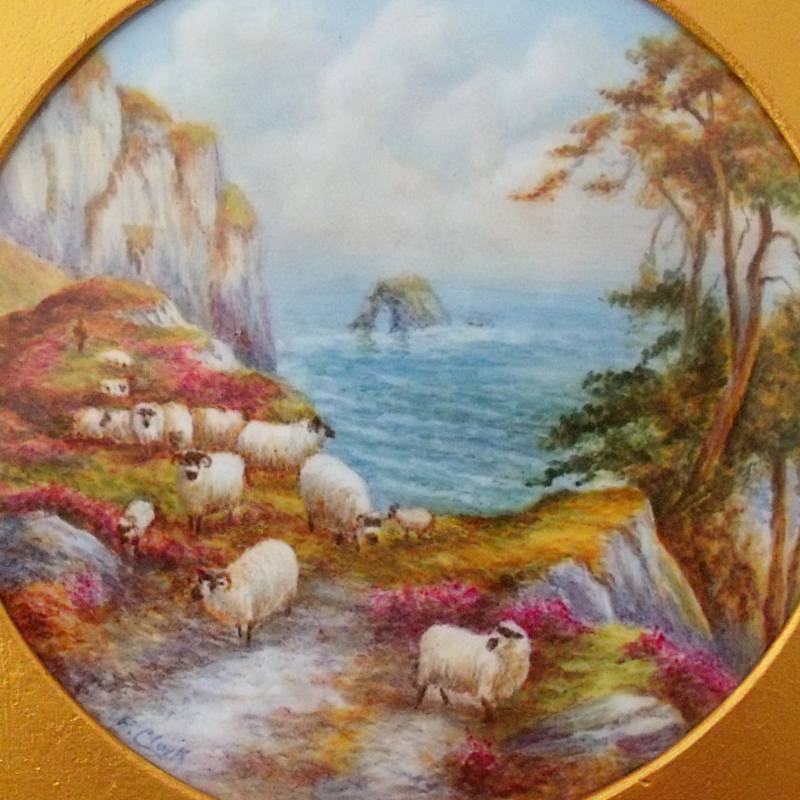 Francis Clark Hand Painted Porcelain Plaque of Sheep 'Royal Worcester Artist'