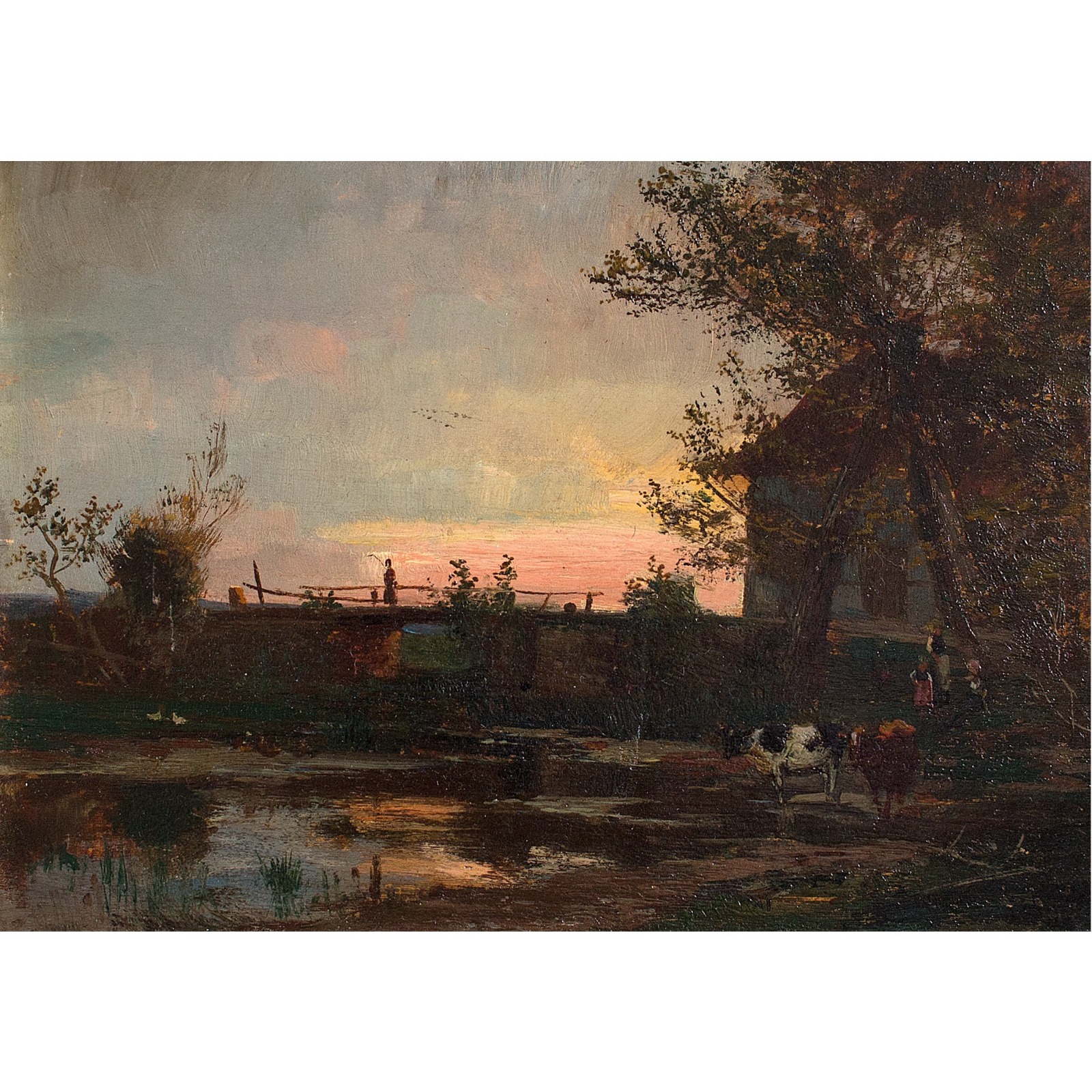 Francois Charles Cachoud, Rural Evening View with Figures and Cattle