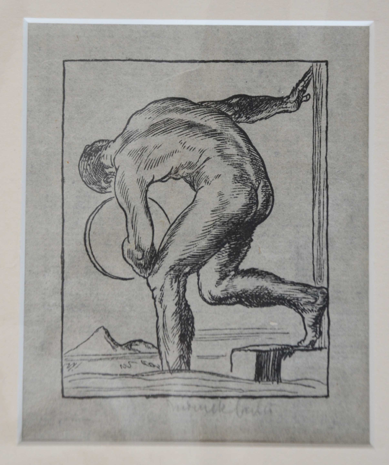 Frederick Carter Fantasy / Mystical Wood Engraving of Male Study
