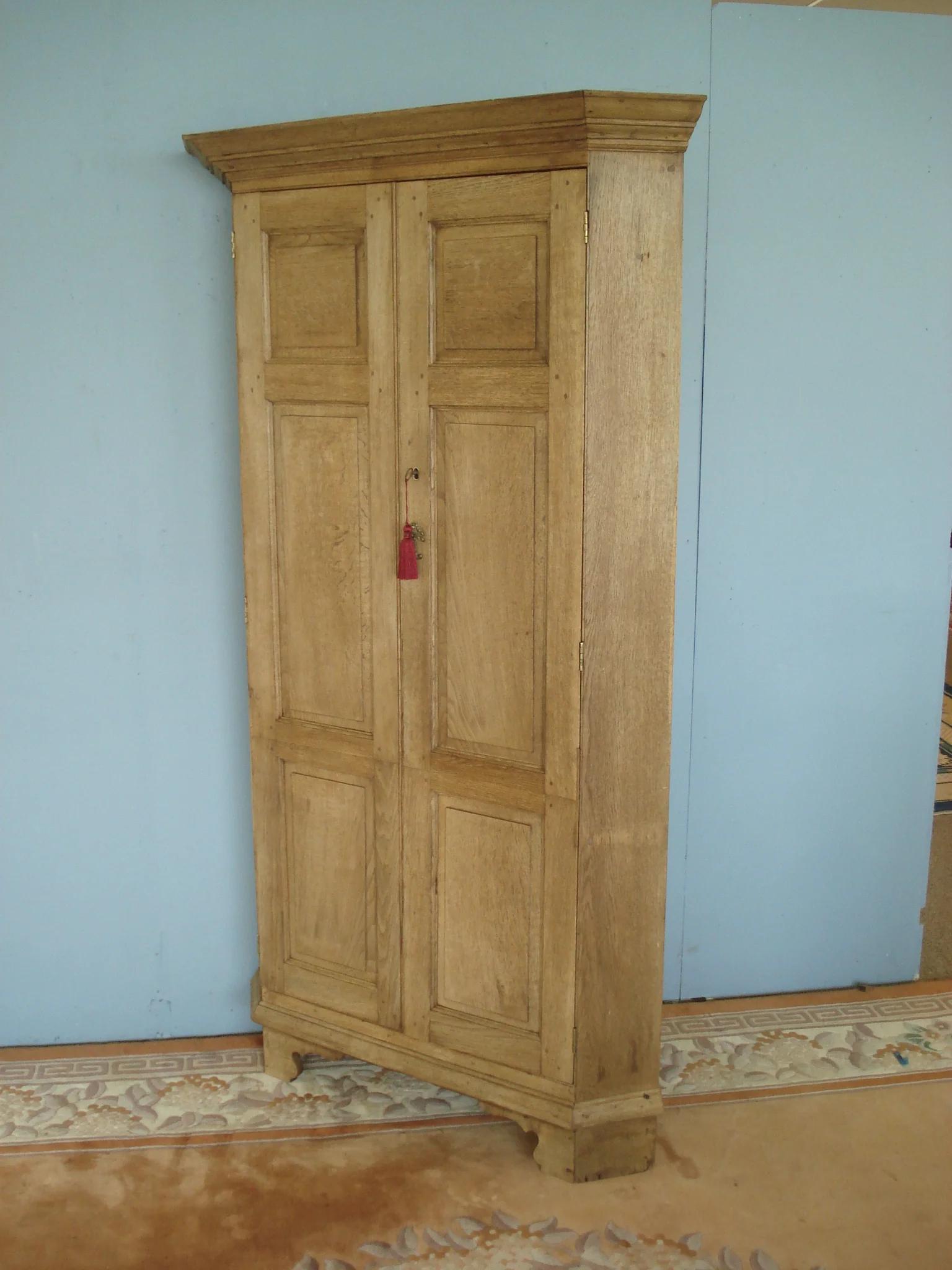 Freestanding 19th Century Bare Oak Two Door Corner Cupboard / Hall Cupboard