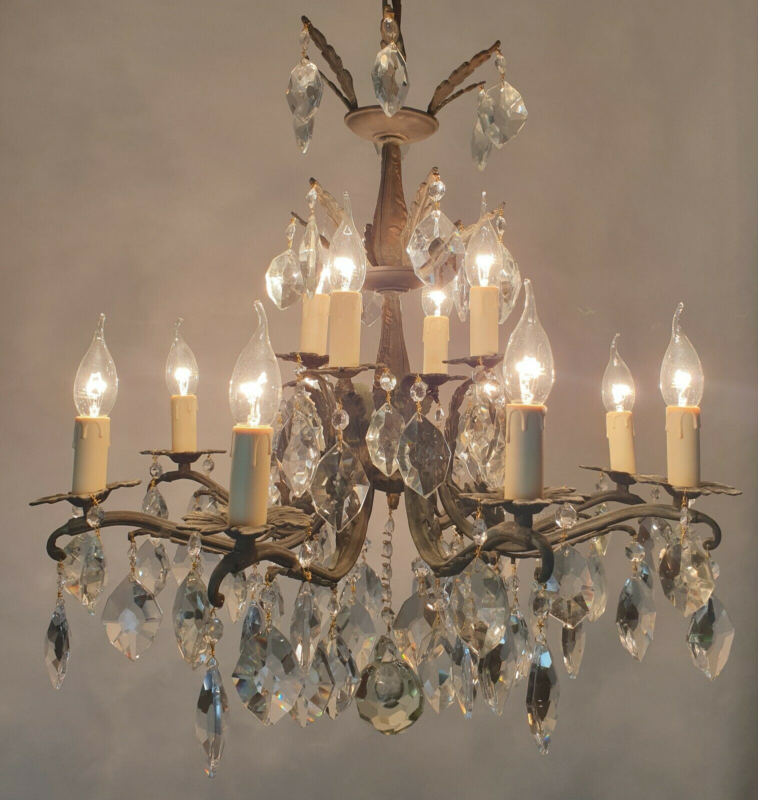 French 12 Arm Chandelier; Rewired 12 Bulb c.1910