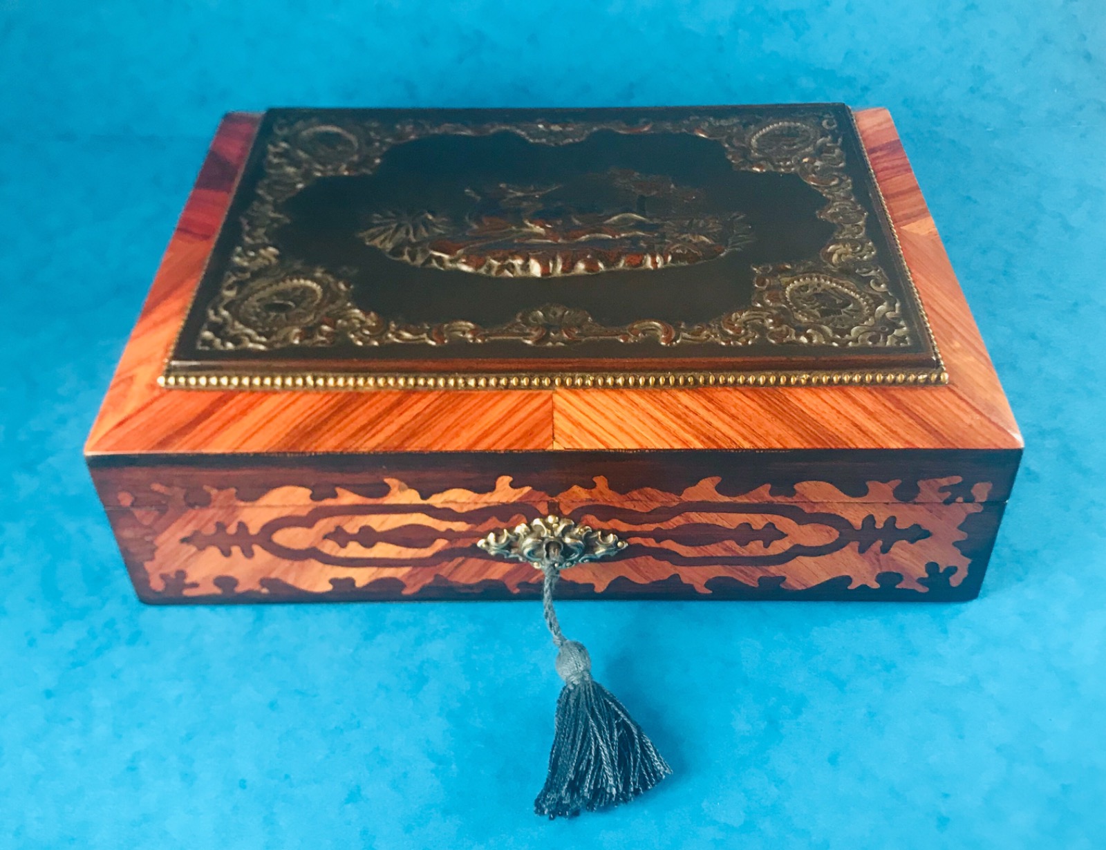 French 1860 Tulipwood, Rosewood & Marquetry Table Box