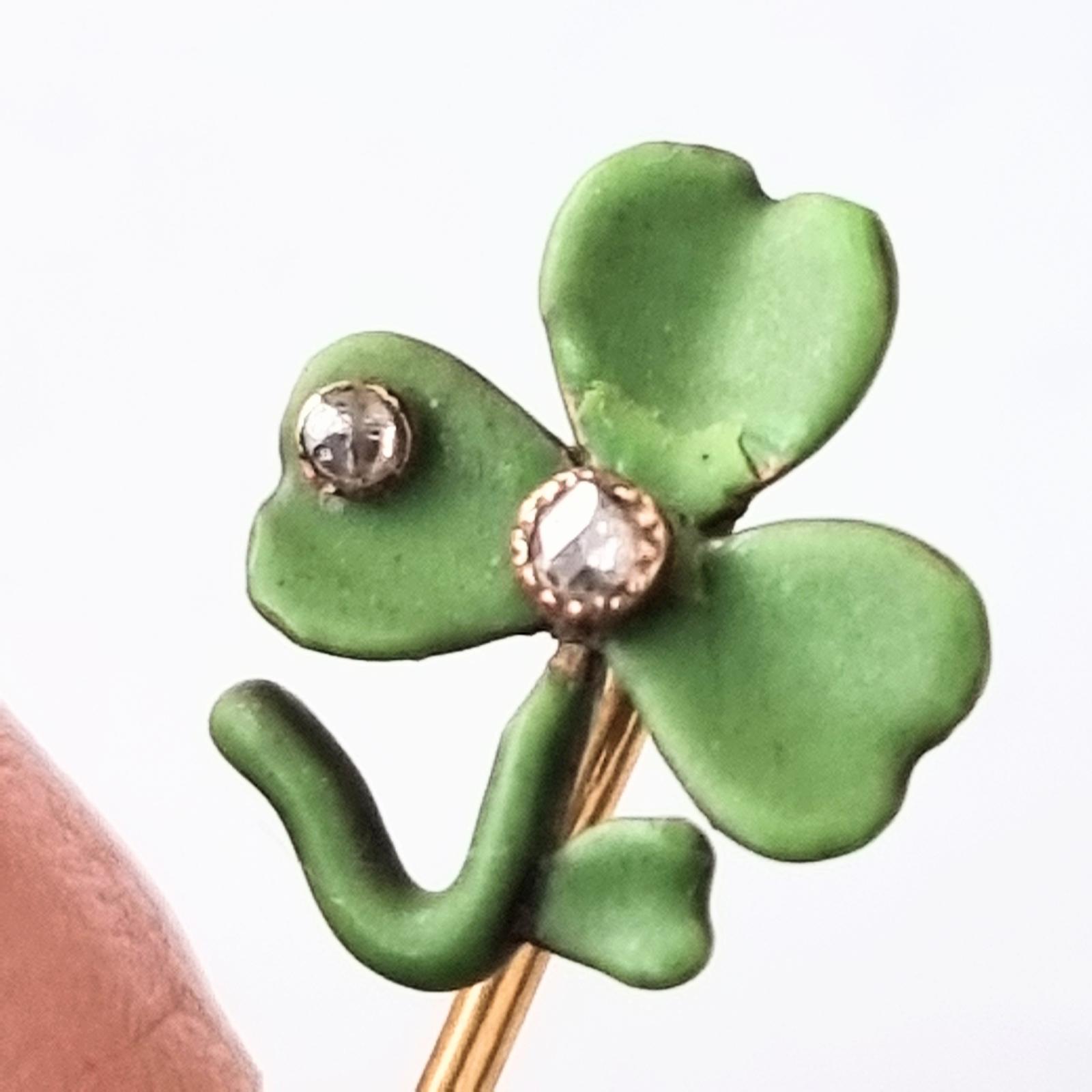 French 18ct Gold, Shamrock Enamel & Diamond Stick Pin, Irish Themed