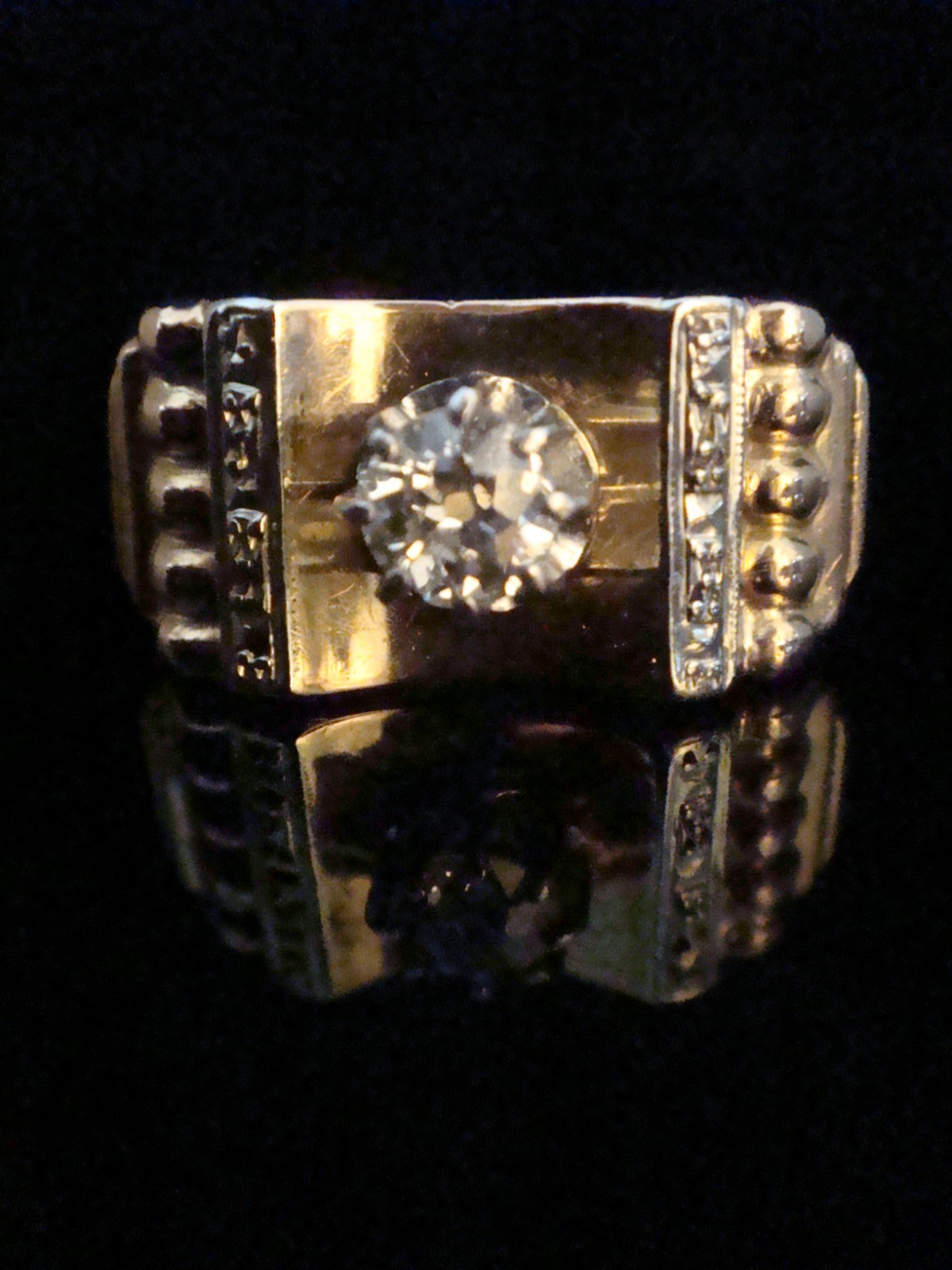 French 18ct Yellow Gold 0.40ct Old Cut Diamond Ring