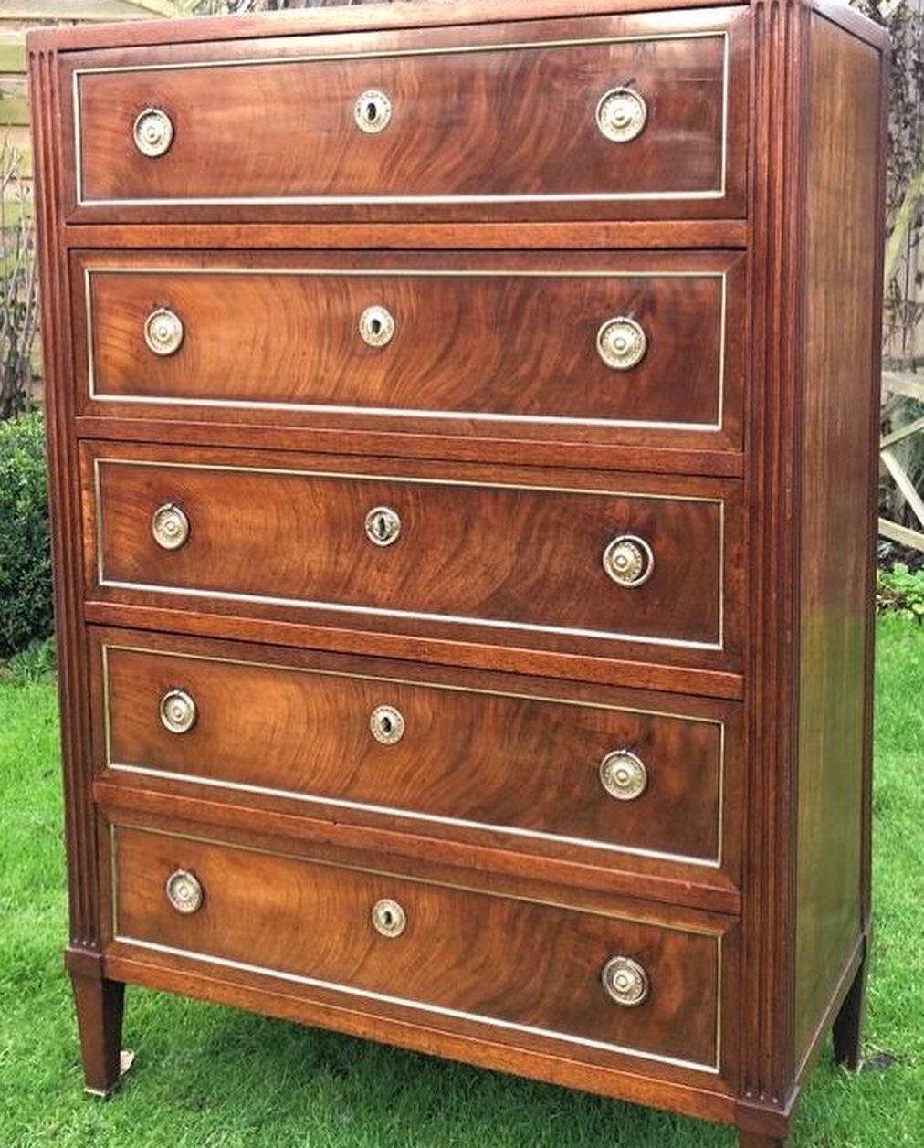 French 18th Century 5 Drawer Chest in Figured Mahogany
