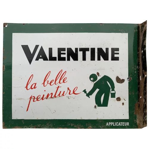 French 1930s Vintage Enamel Sign Green Painting Valentine