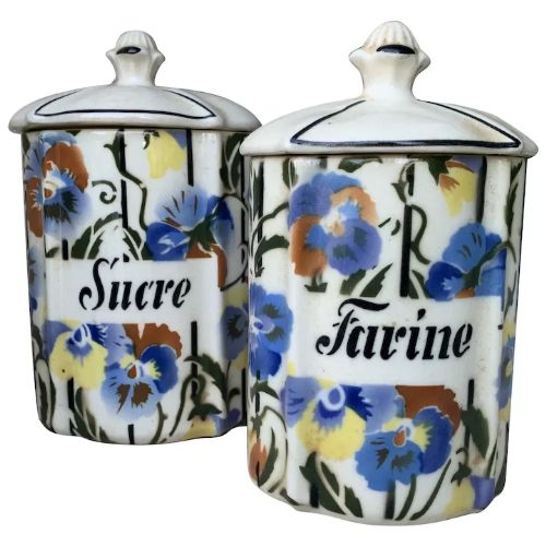 French 1950s Kitchen Storage Jars, Sucre, Farine