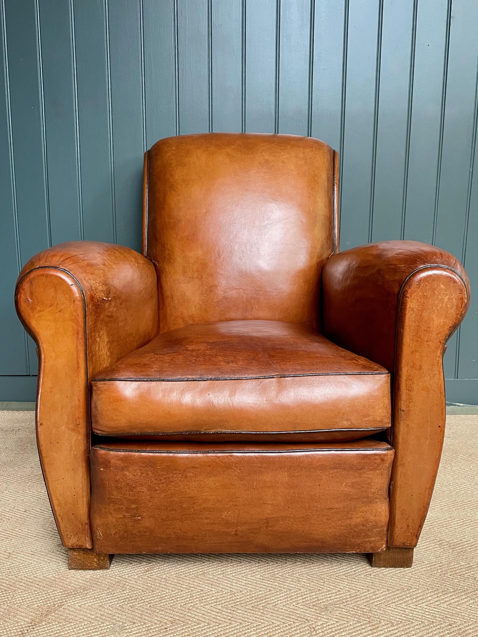 French 1950s Leather Armchair