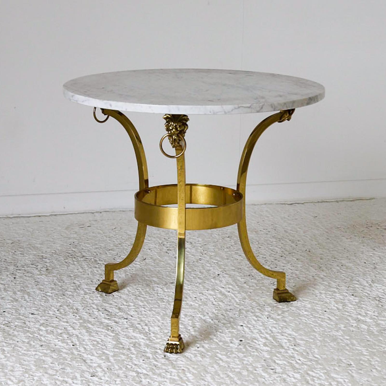 French 1970 Empire Style Side Table  of Gilt Brass & White Marble Top (1 of 8)