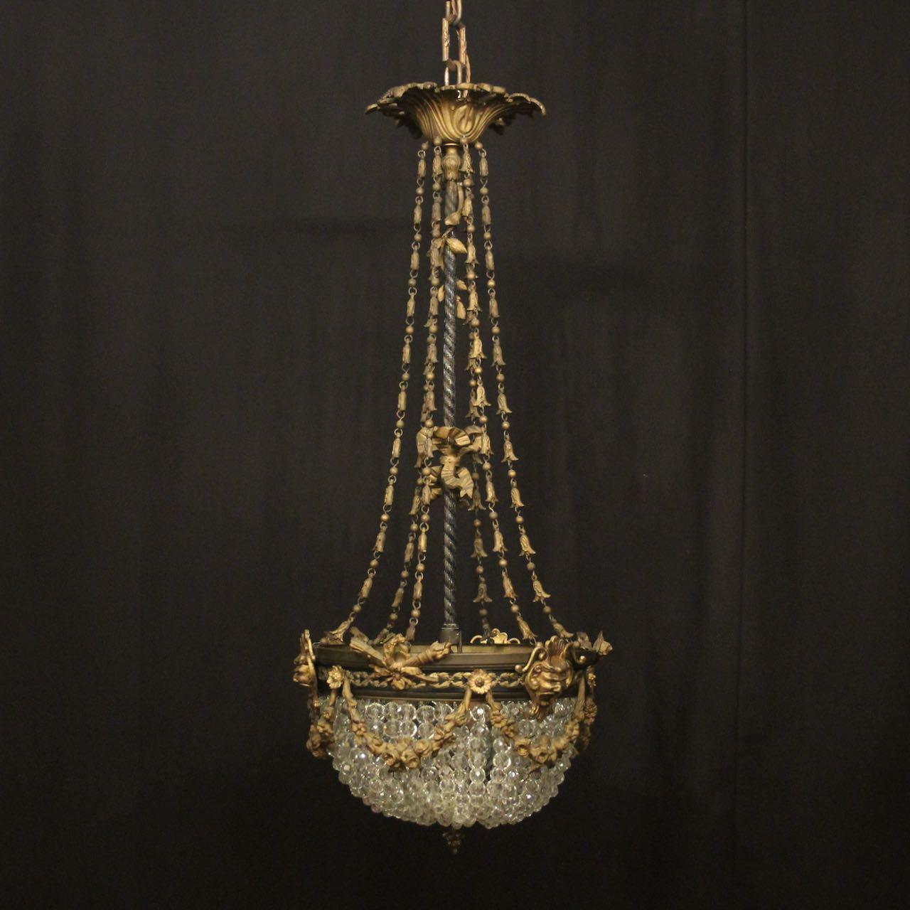 French 19th C Triple Light Bag Chandelier