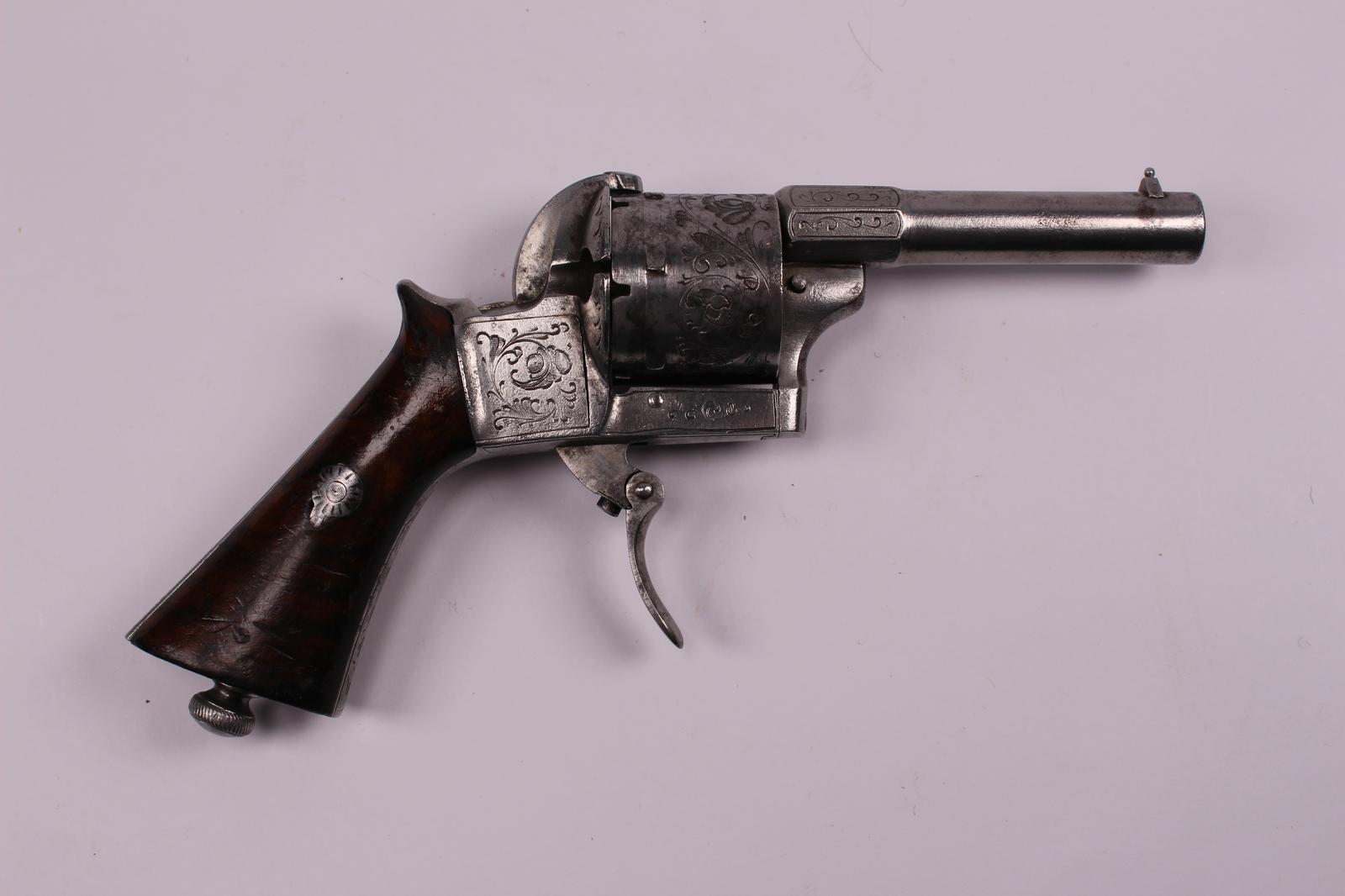French 19th Century 6 Shot 7mm Self Cocking Pinfire Revolver