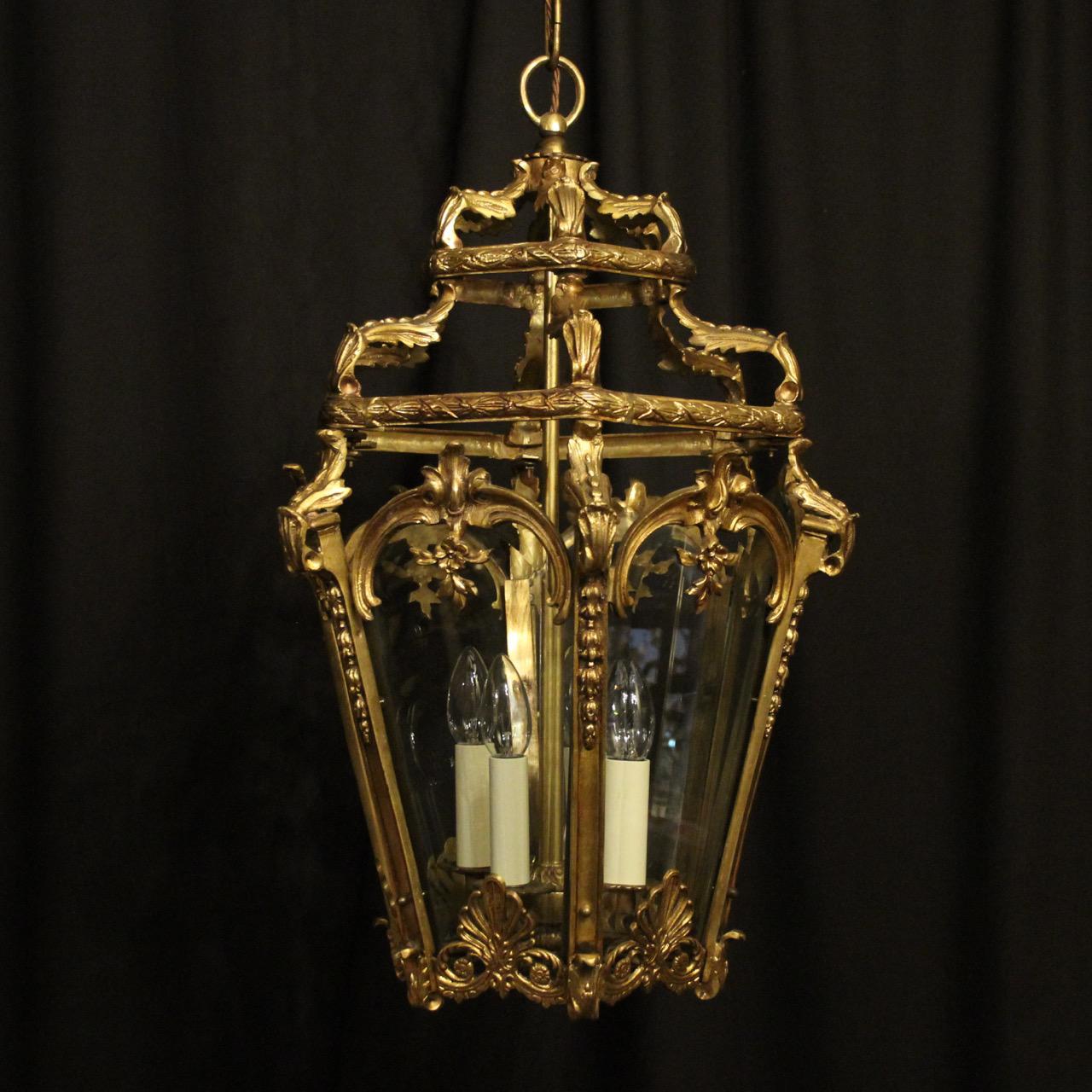 French 19th Century Gilt Bronze Antique Hall Lantern