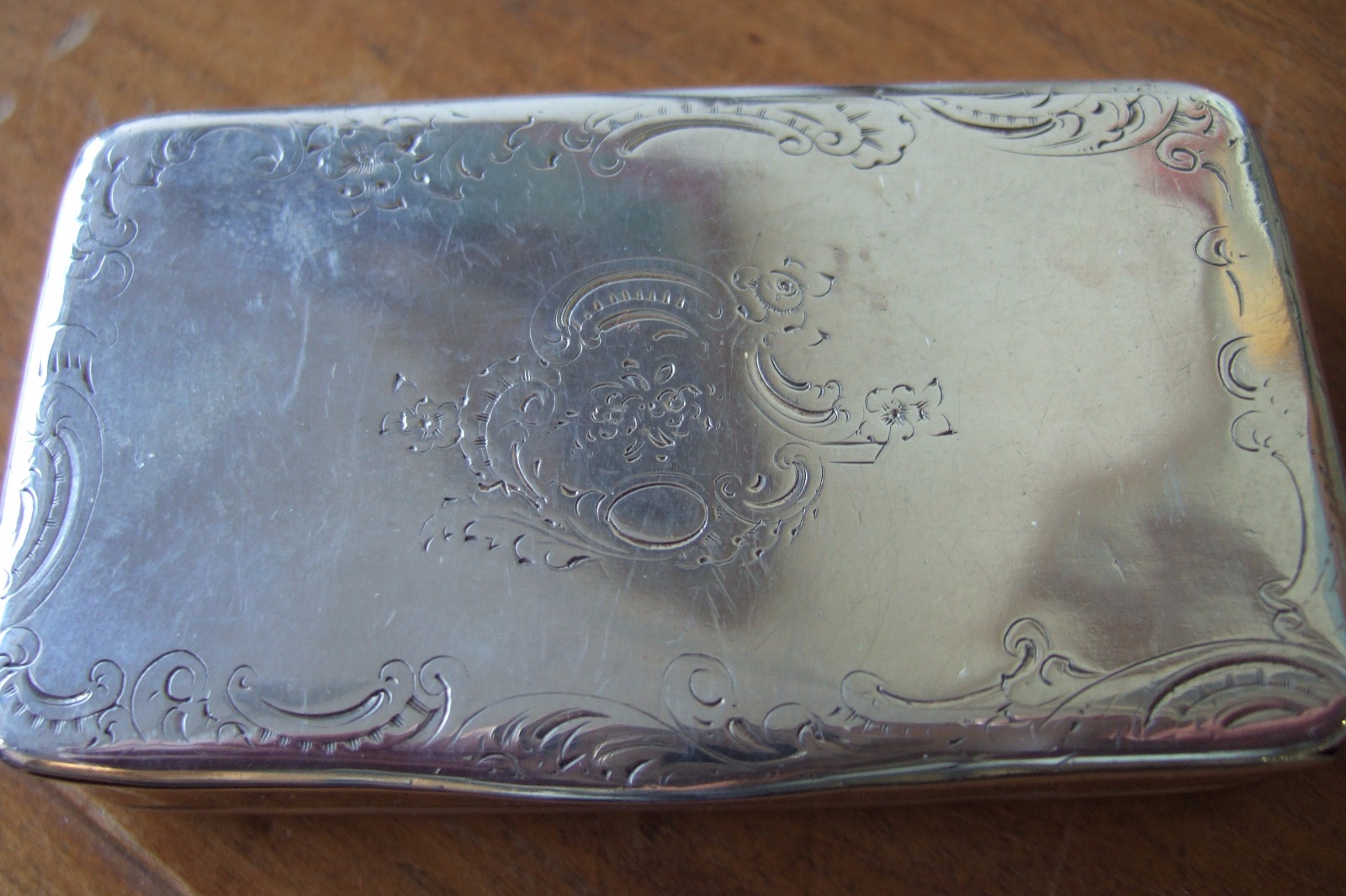 French 19th Century Hallmarked Silver Snuff Box with Engraved Design To Lid & Gilded Interior