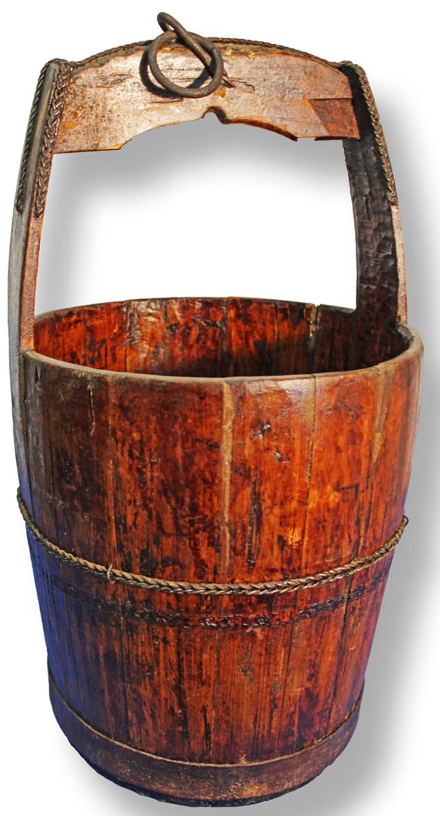 French 19th Century Iron Bound Wooden Well Bucket