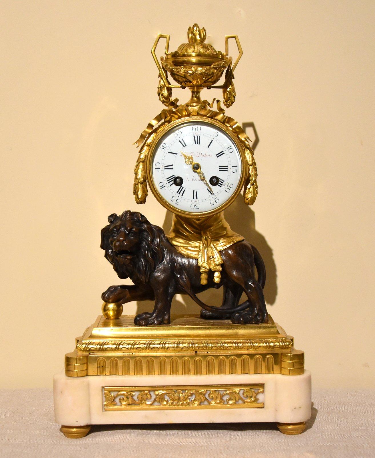 French 19th Century Marble, Ormolu and Bronze Mantel Clock