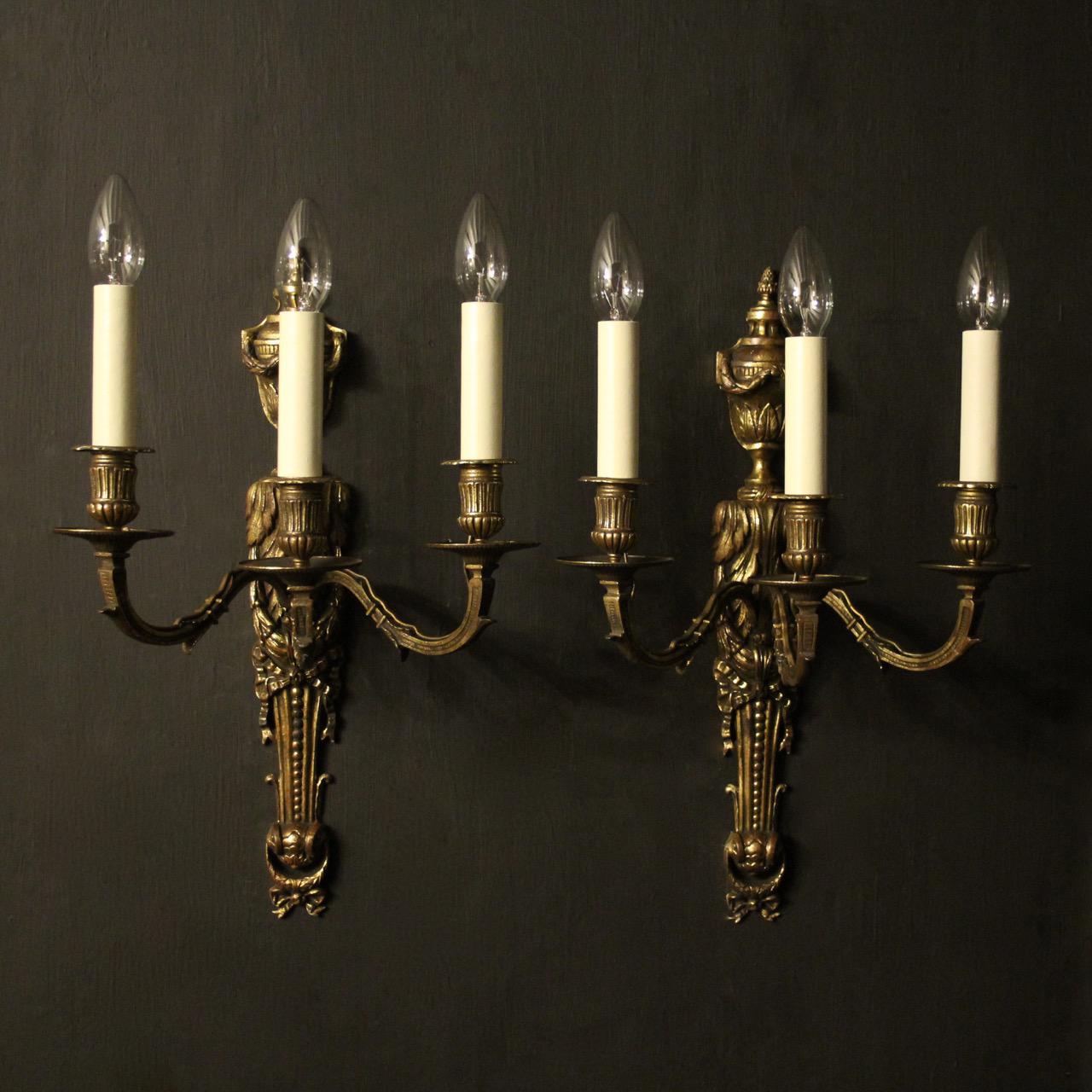 French 19th Century Pair of Bronze Antique Wall Sconces