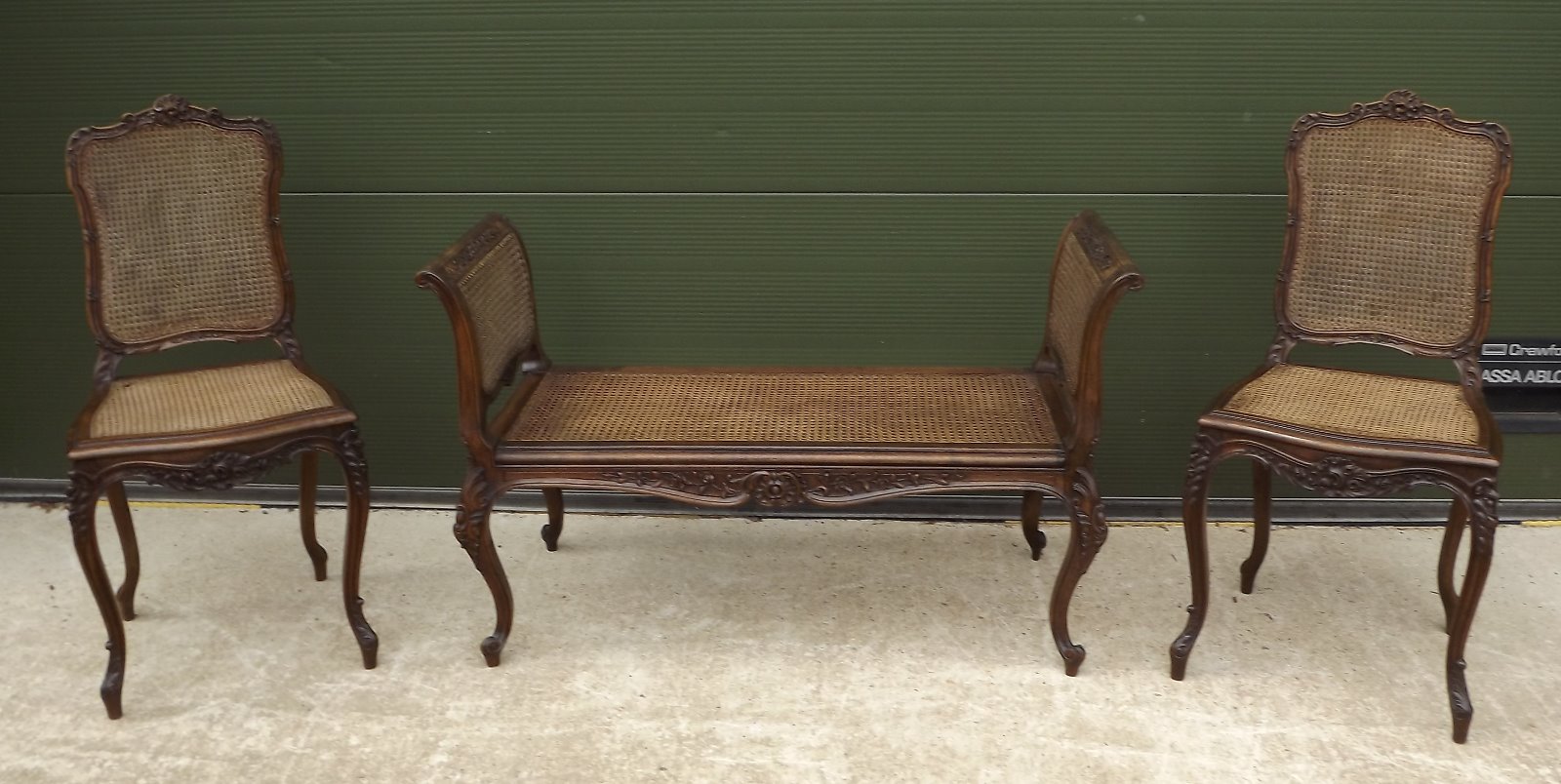 French 19th Century Window Seat & Pair of Chairs Parlour Set