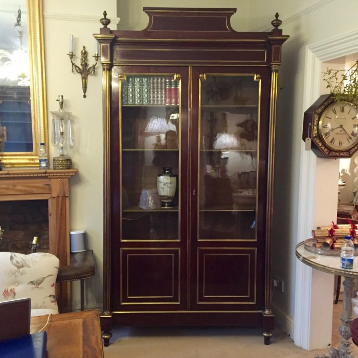 French 2 Door Brass Inlay Bookcase c.1880 (1 of 1)