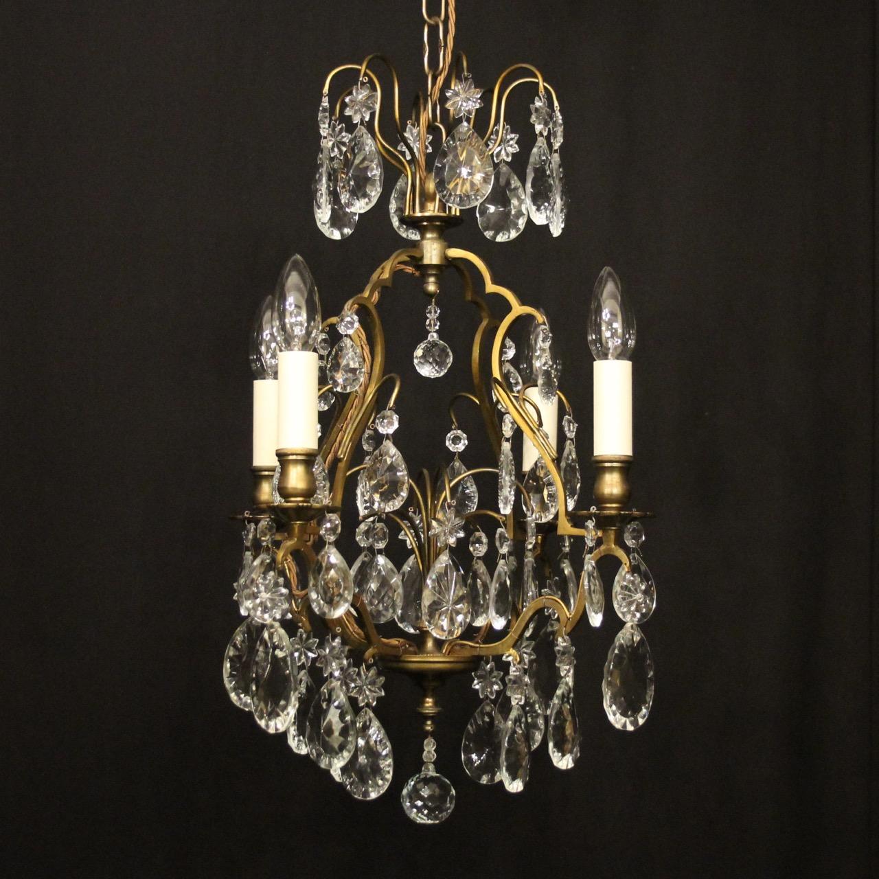 French 4 Light Birdcage Crystal Chandelier