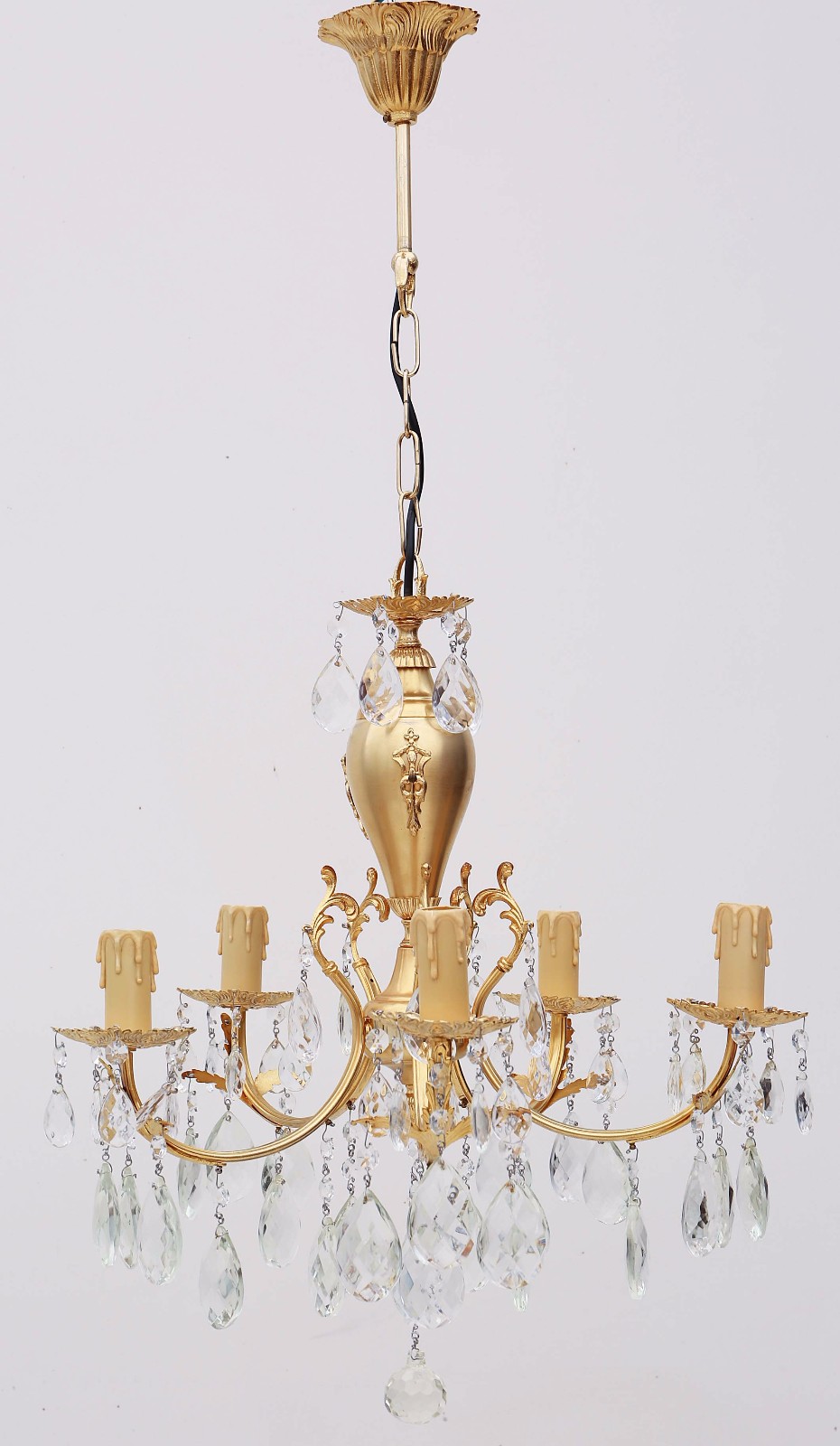 French 5 Lamp Ormolu Brass Crystal Chandelier FREE DELIVERY