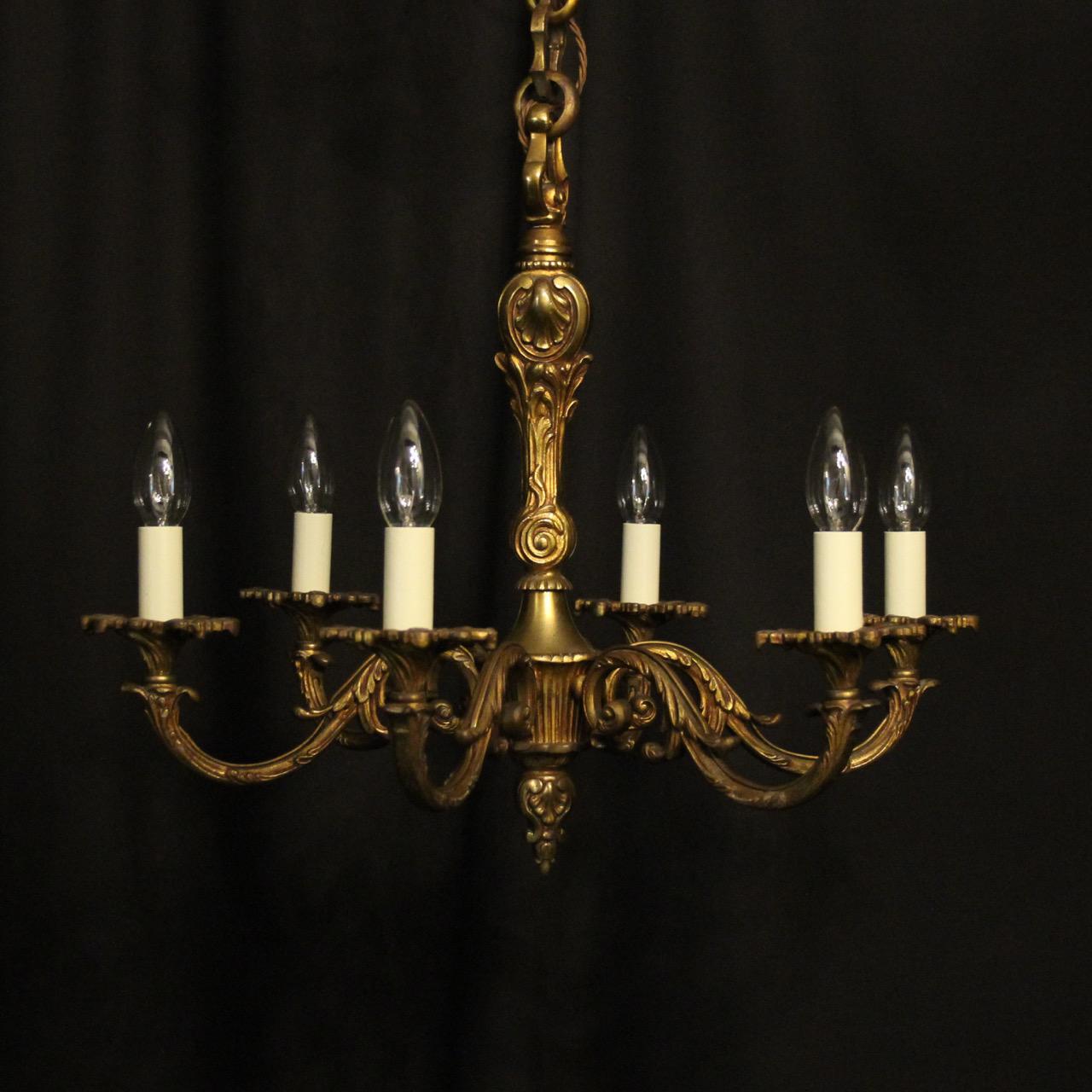French 6 Light Gilded Bronze Early 20th Century Antique Chandelier