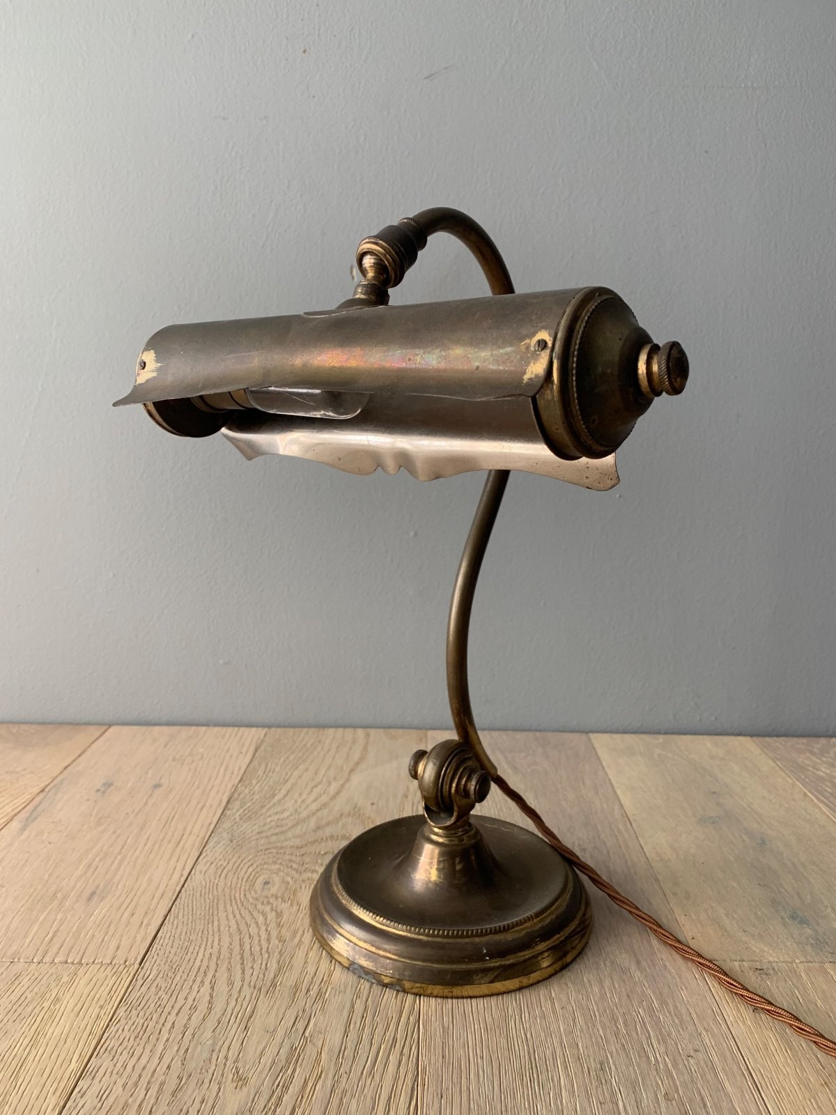French Aged Brass Articulated Piano Desk Lamp, Rewired & Pat Tested