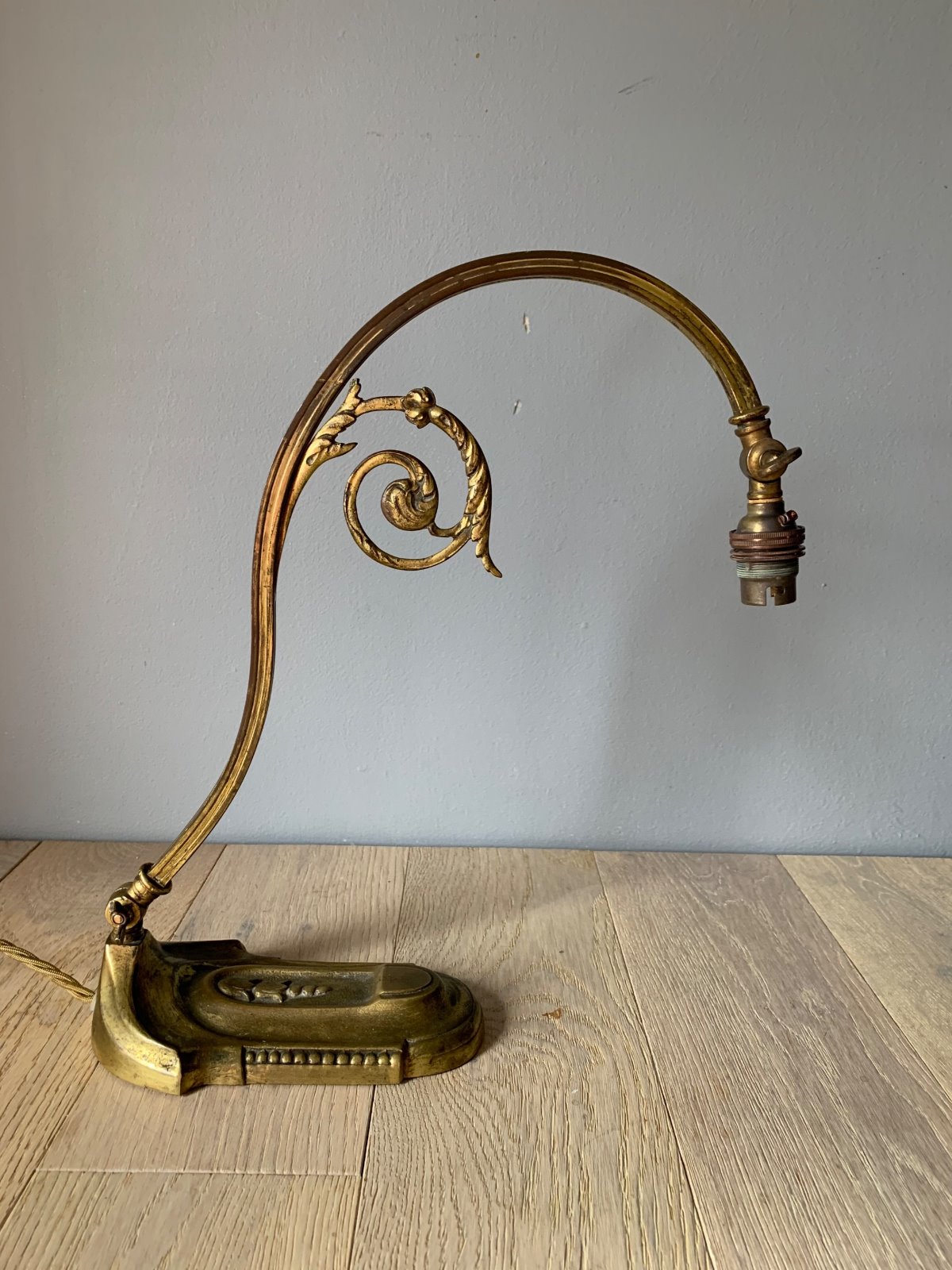 French Aged Gilt Brass Adjustable Desk Lamp, Rewired & PAT Tested