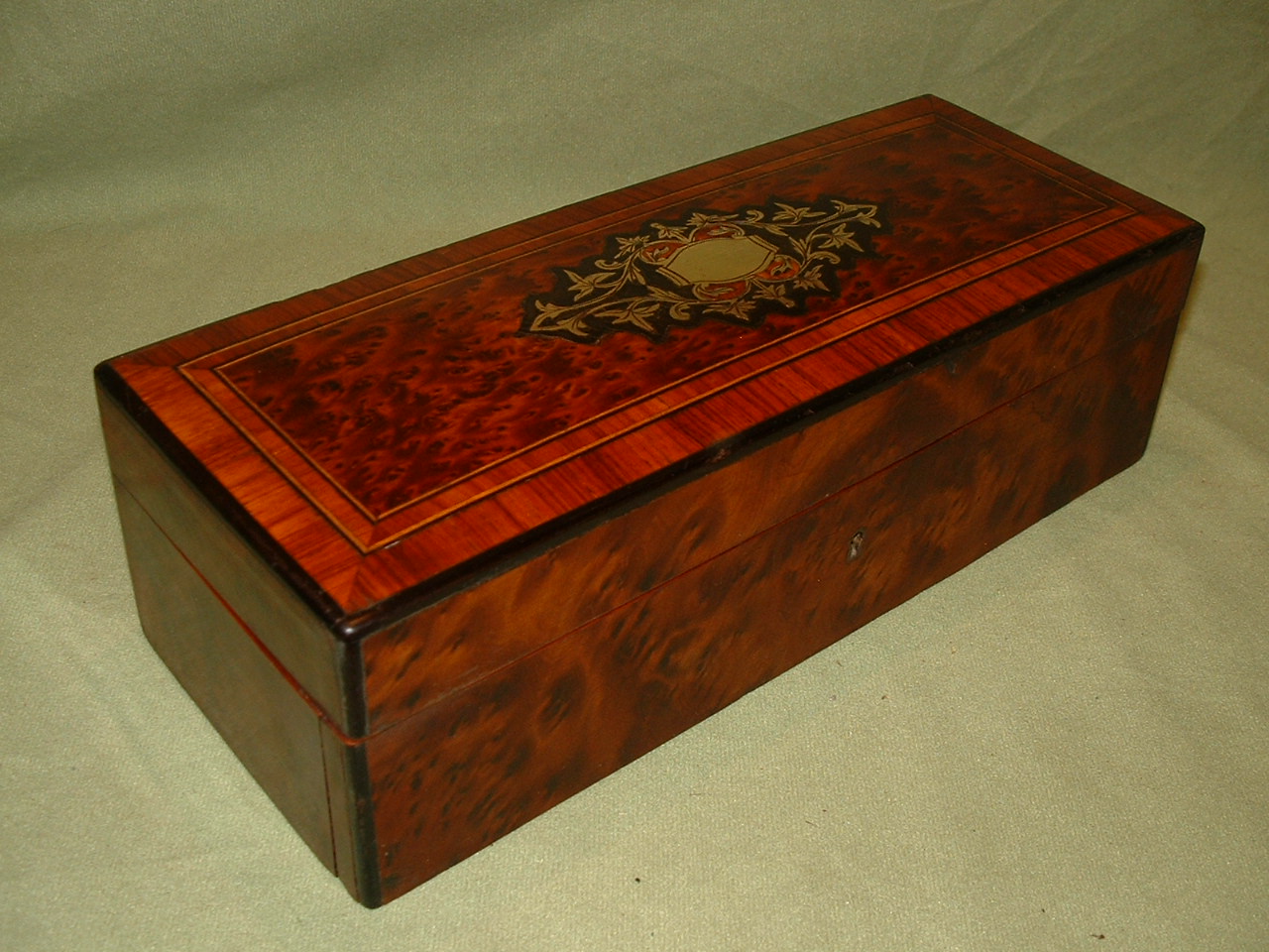 French Amboyna, Boulle Style Inlaid Jewellery / Glove Box c.1870
