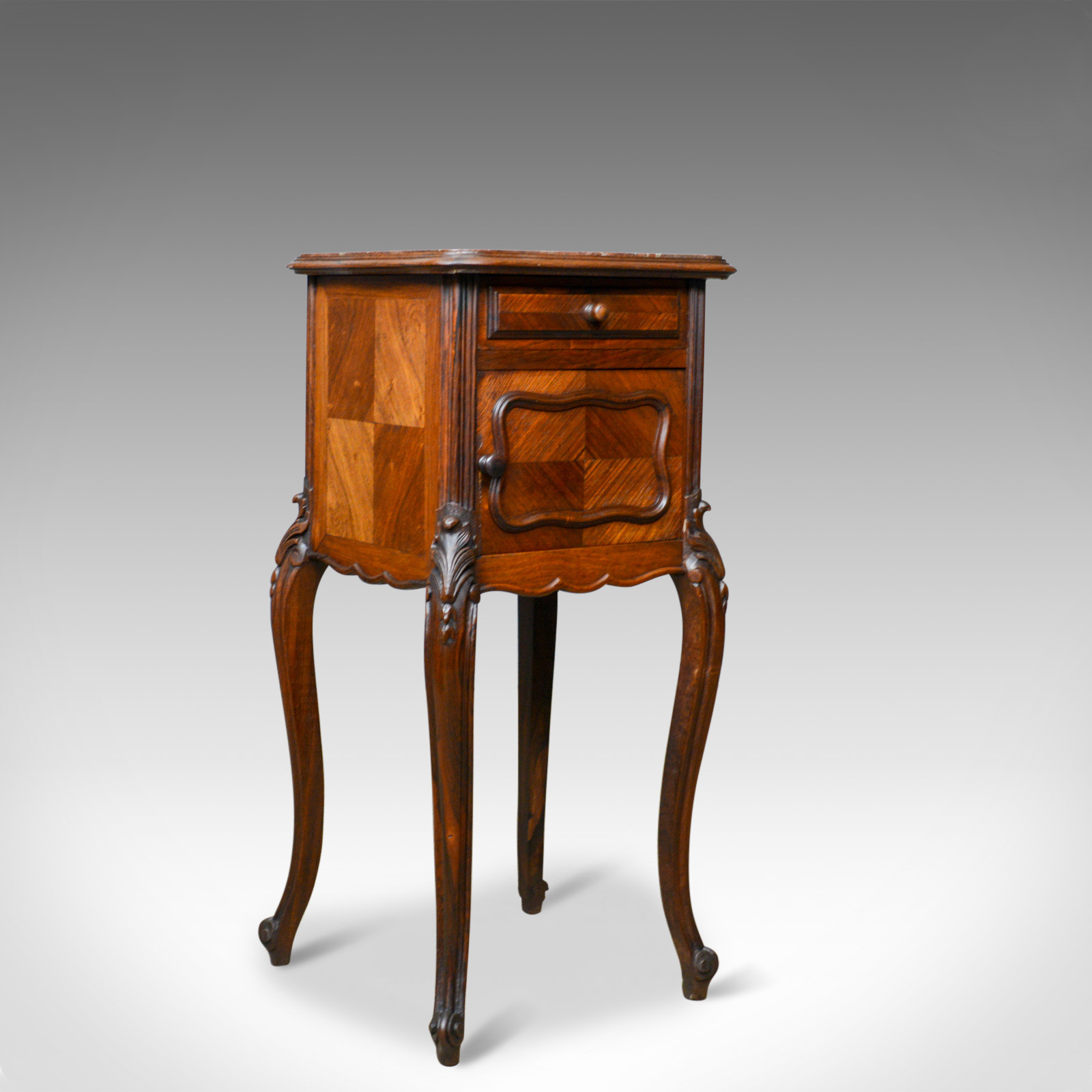 French Antique Bedside Cabinet, Victorian, Walnut, Marble Top Pot Cupboard c.1880