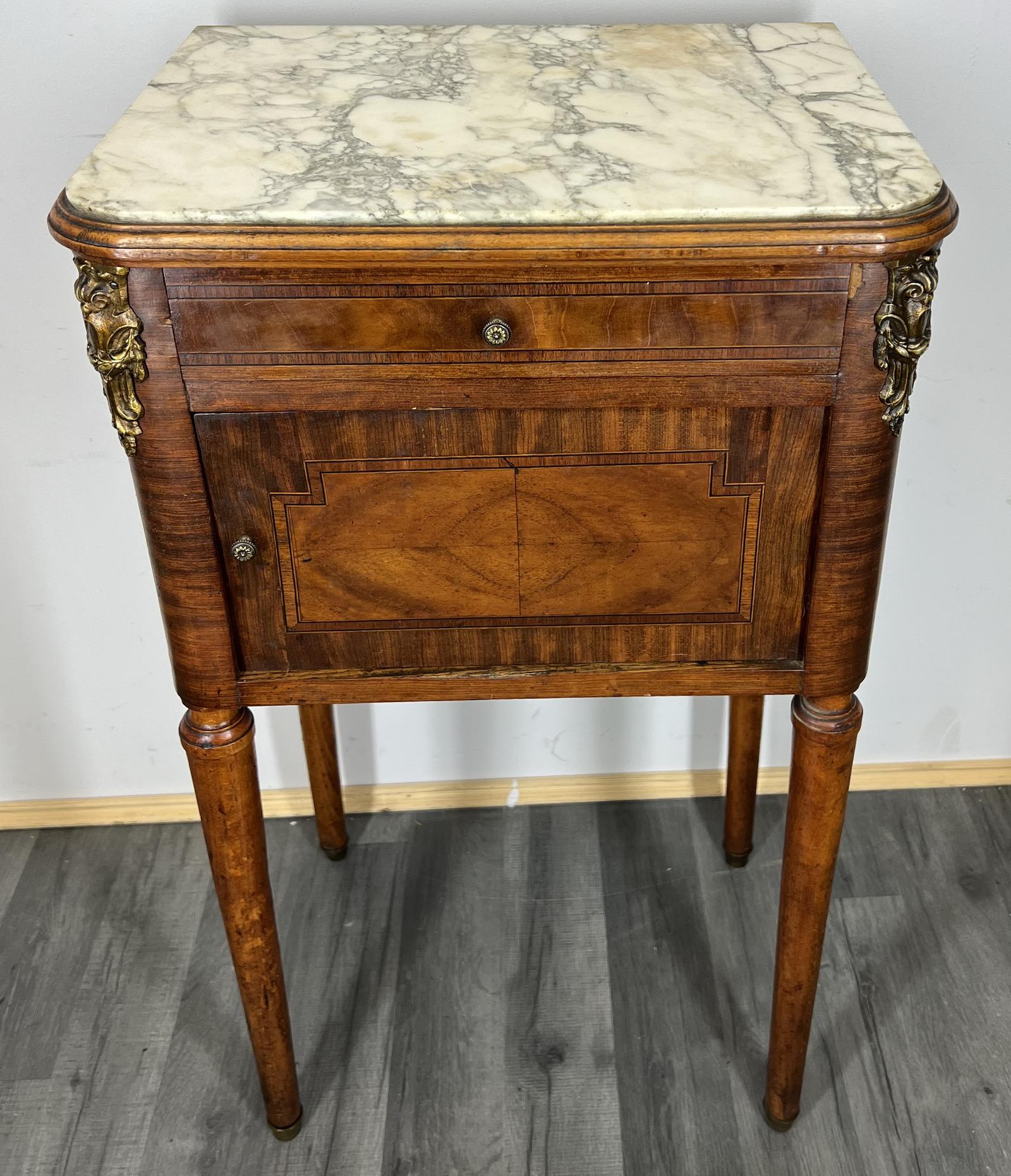 French Antique Bedside Table Cupboard Cabinet With Marble Top