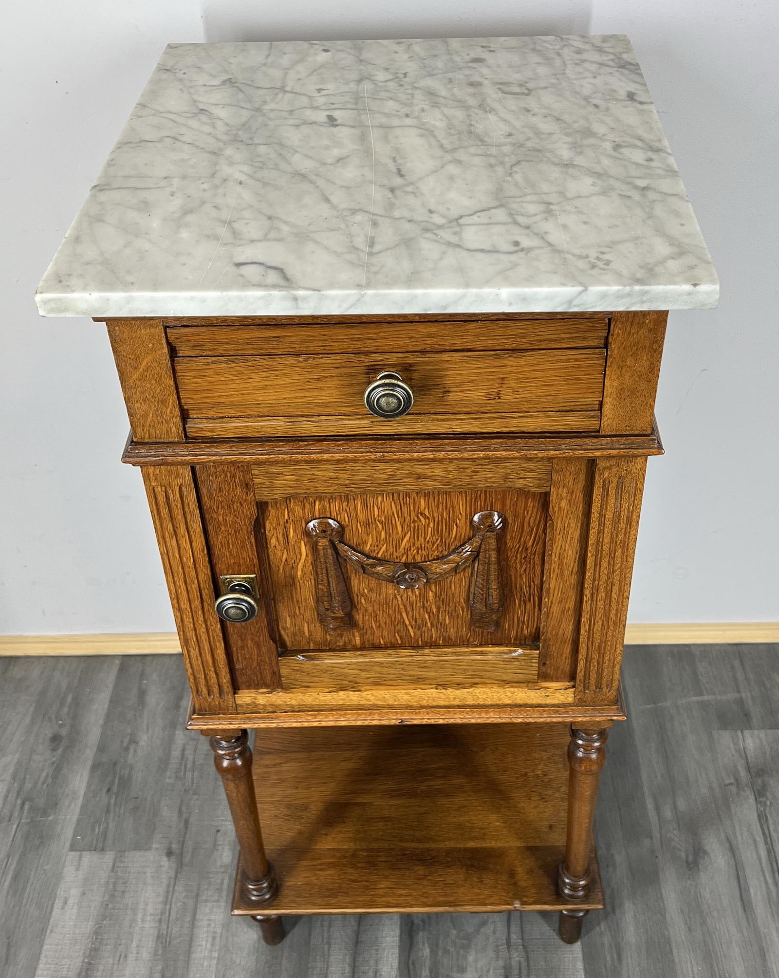 French Antique Bedside Table Cupboard Cabinet With Marble Top