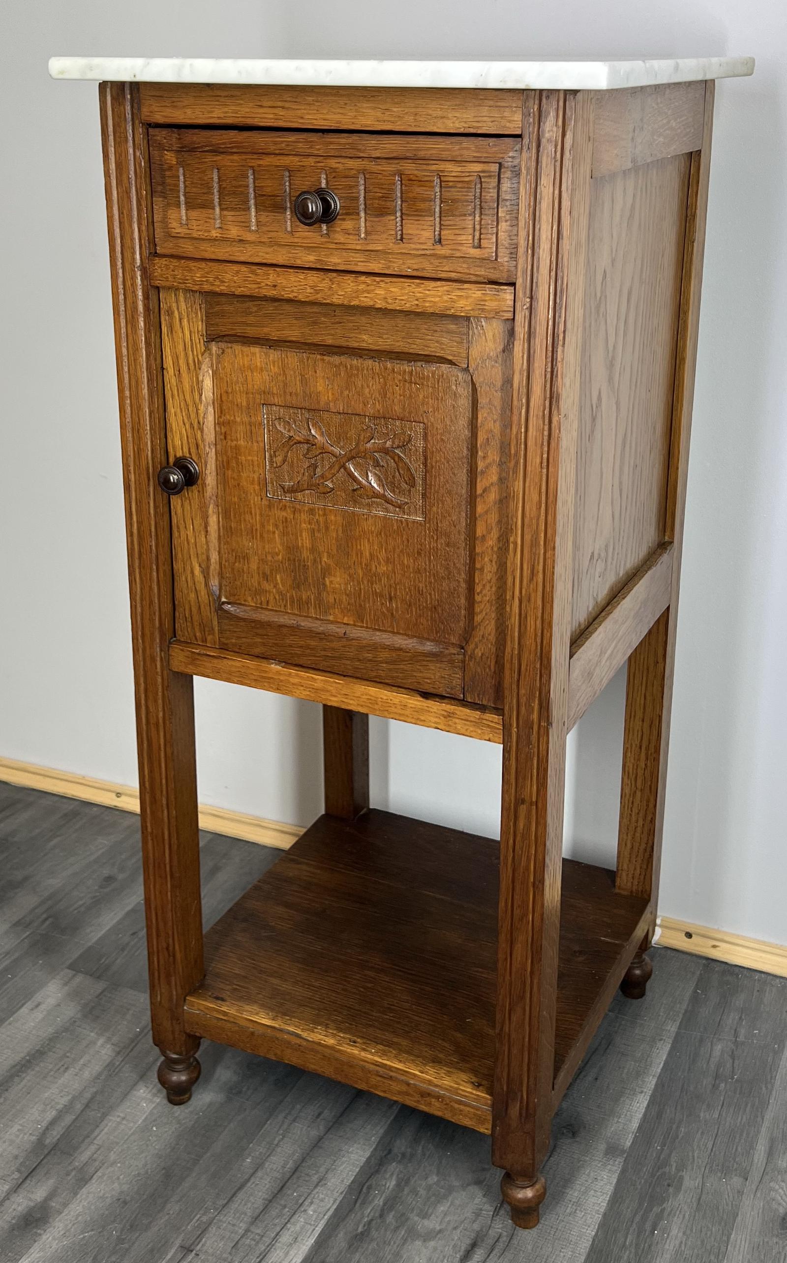 French Antique Bedside Table Cupboard Cabinet with Marble Top
