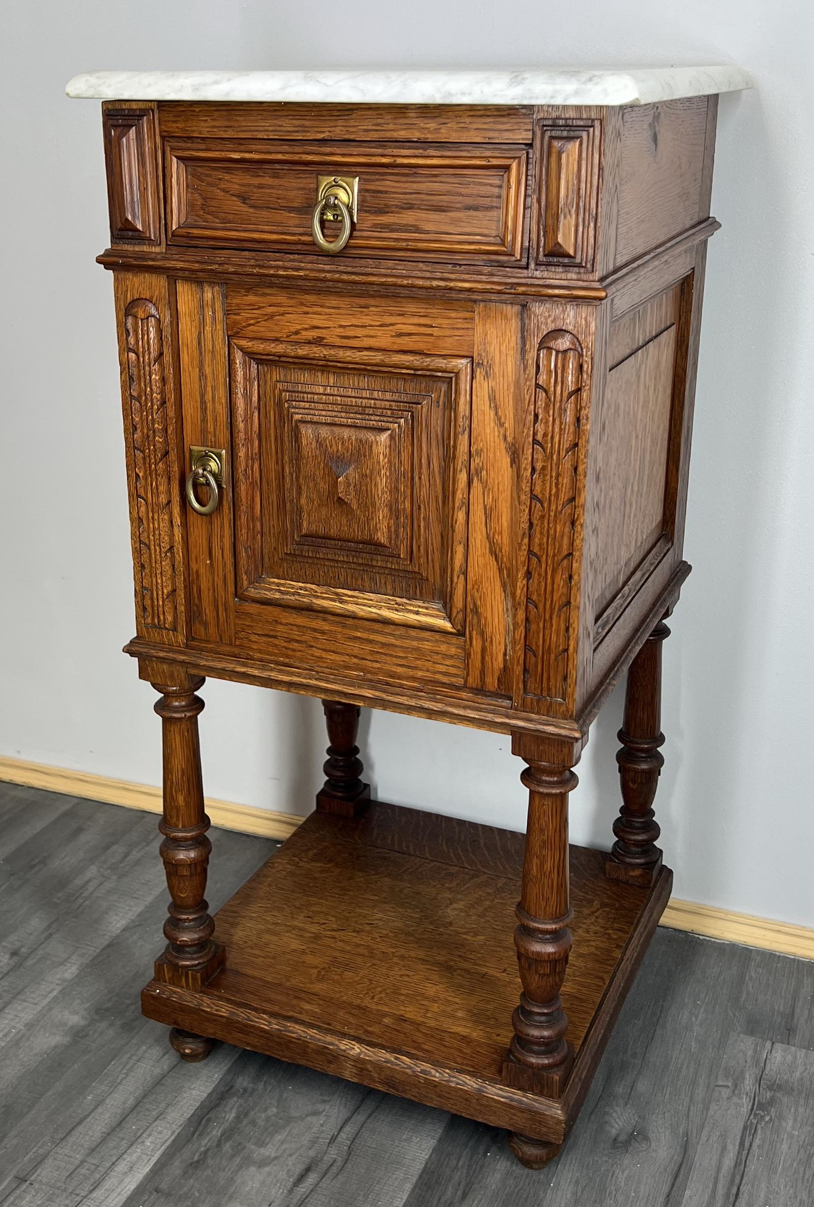 French Antique Bedside Table Cupboard Cabinet with Marble Top
