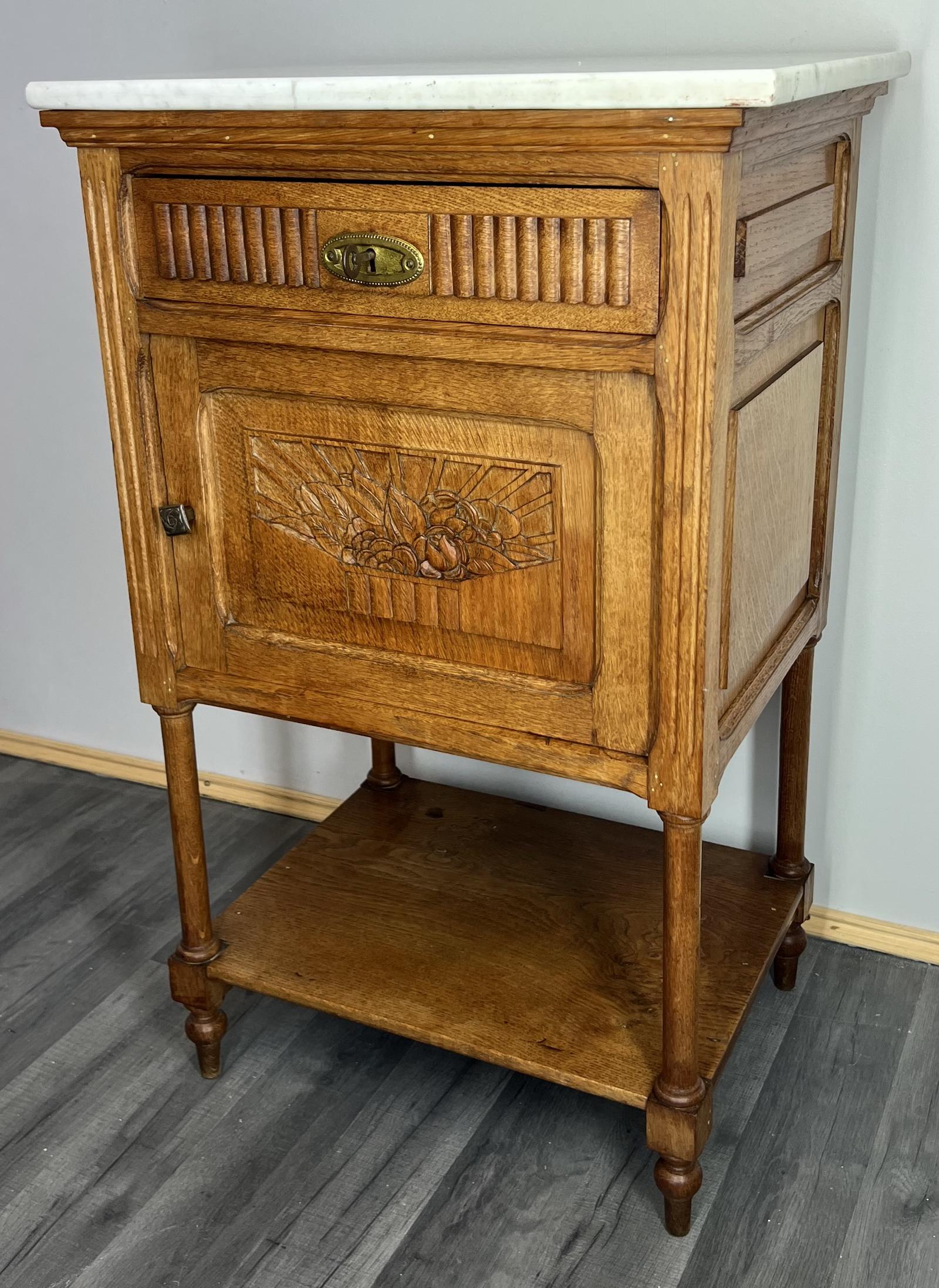 French Antique Bedside Table Cupboard Cabinet with Marble Top