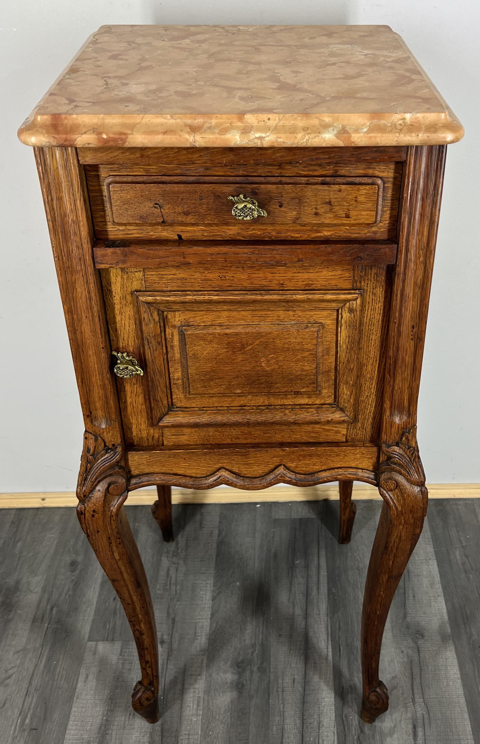 French Antique Bedside Table Cupboard / Cabinet with Marble Top