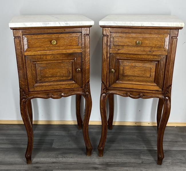 French Antique Bedside Tables Cupboards Cabinets with Marble Tops