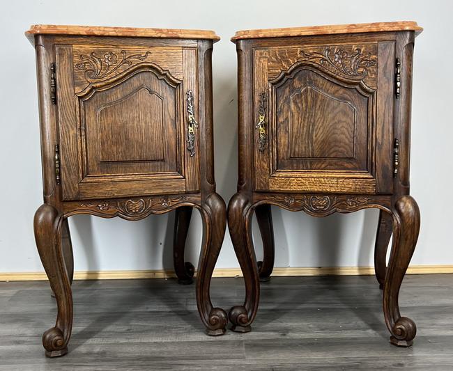 French Antique Bedside Tables Cupboards Cabinets with Marble Tops