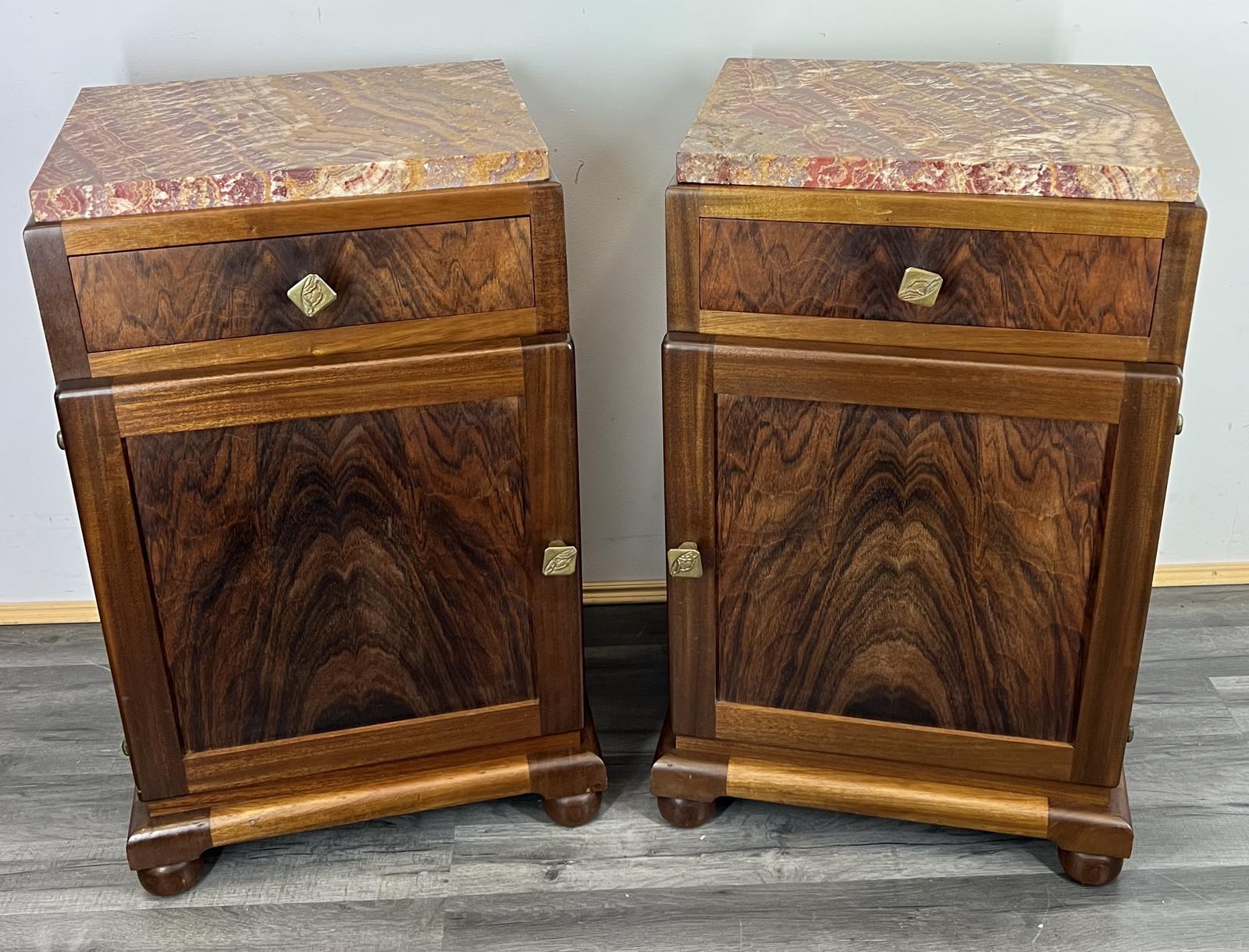 French Antique Bedside Tables Cupboards Cabinets with Marble Tops