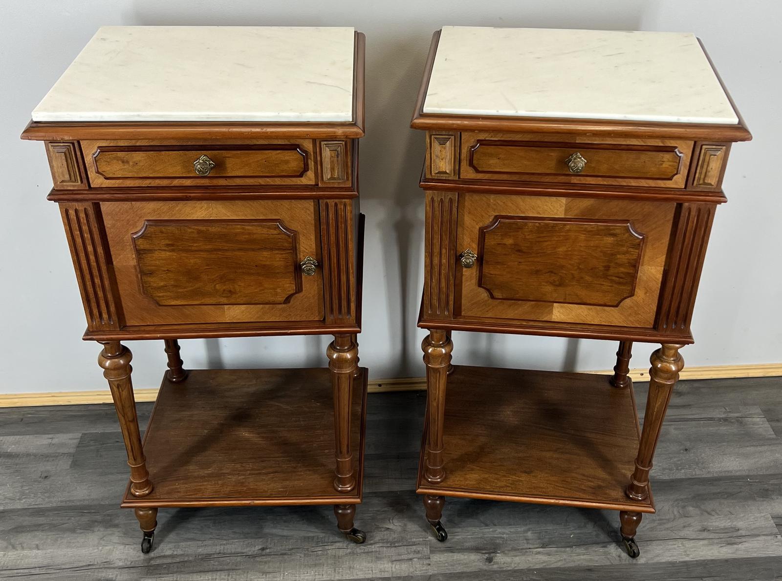 French Antique Bedside Tables Cupboards Cabinets with Marble Tops