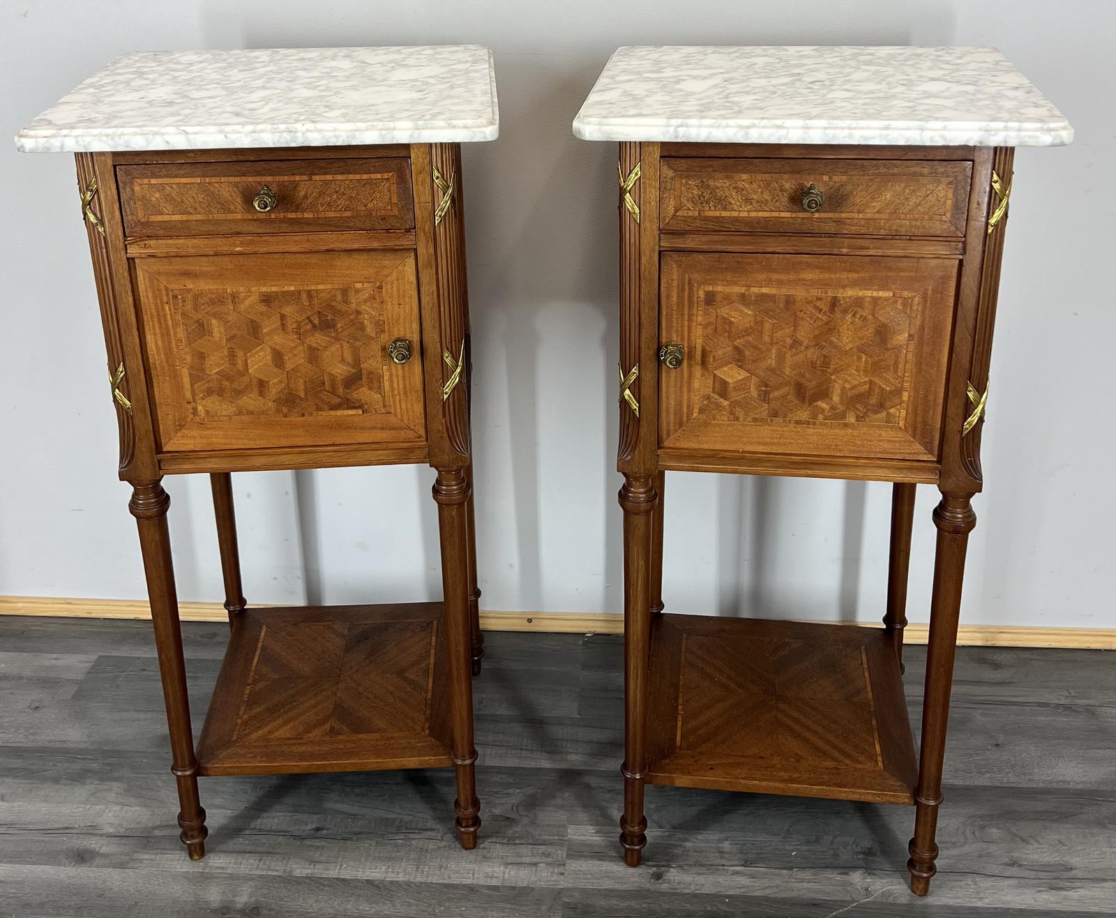 French Antique Bedside Tables / Cupboards / Cabinets with Marble Tops