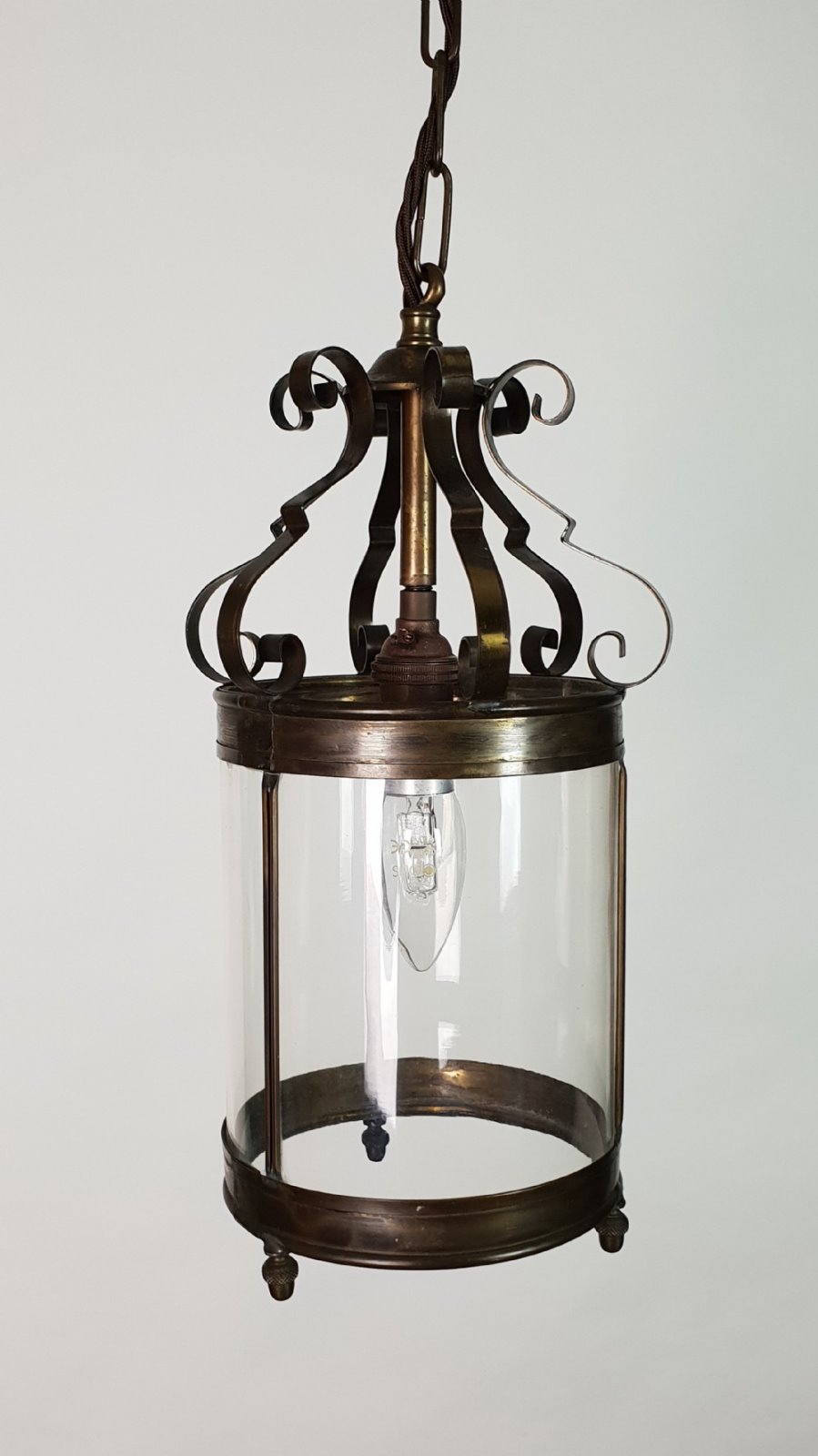 French Antique Brass Strapwork Hall Lantern, Rewired