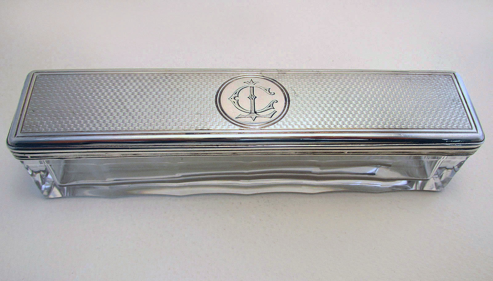 French Antique (c.1890) Solid Sterling Silver Top Lidded & Cut Glass Dressing Table Storage Box/Jar/Pot/Container.