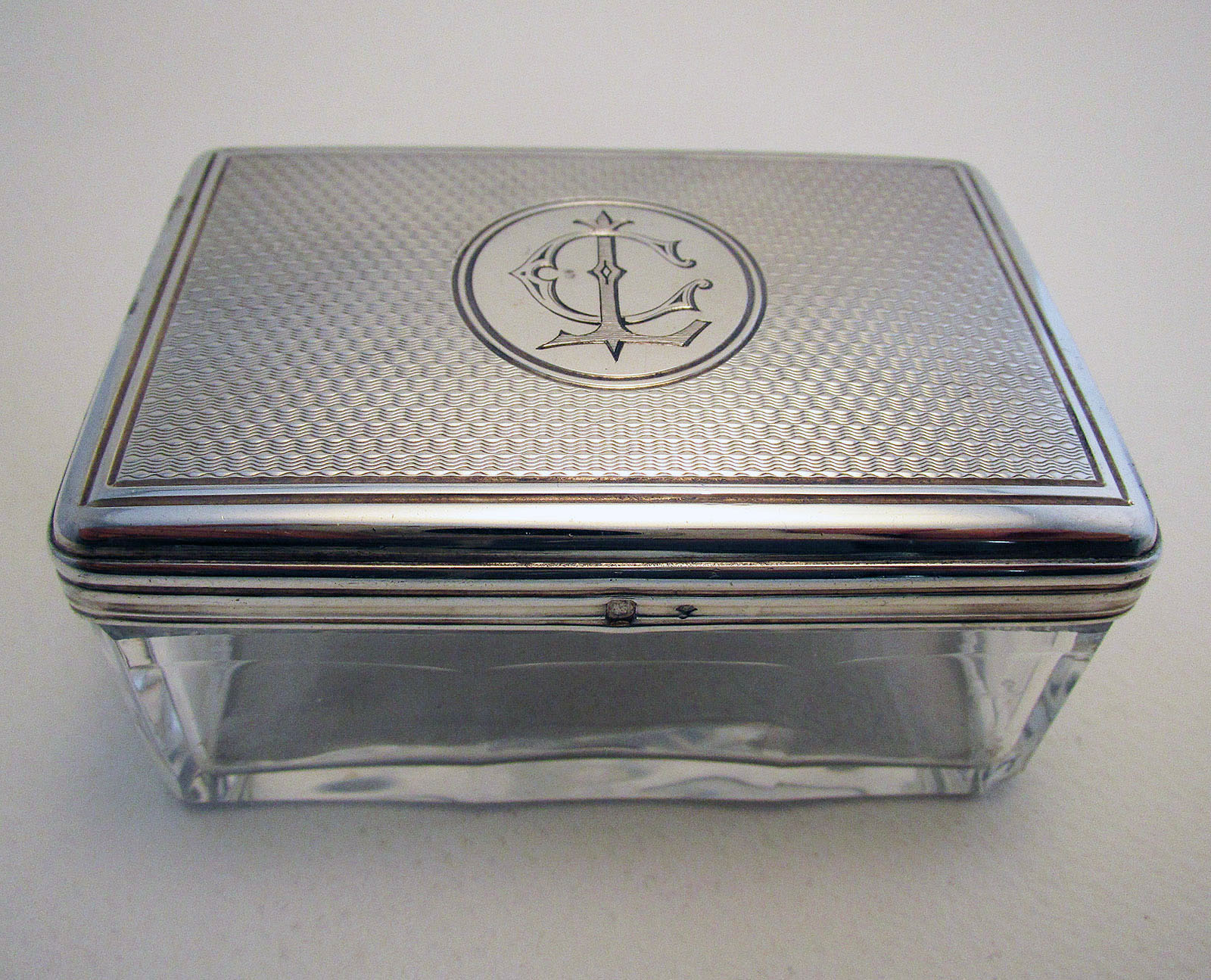 French Antique (C.1890) Solid Sterling Silver Top Lidded & Cut Glass Dressing Table Storage Box/Jar/Pot/Container. (1 of 1)