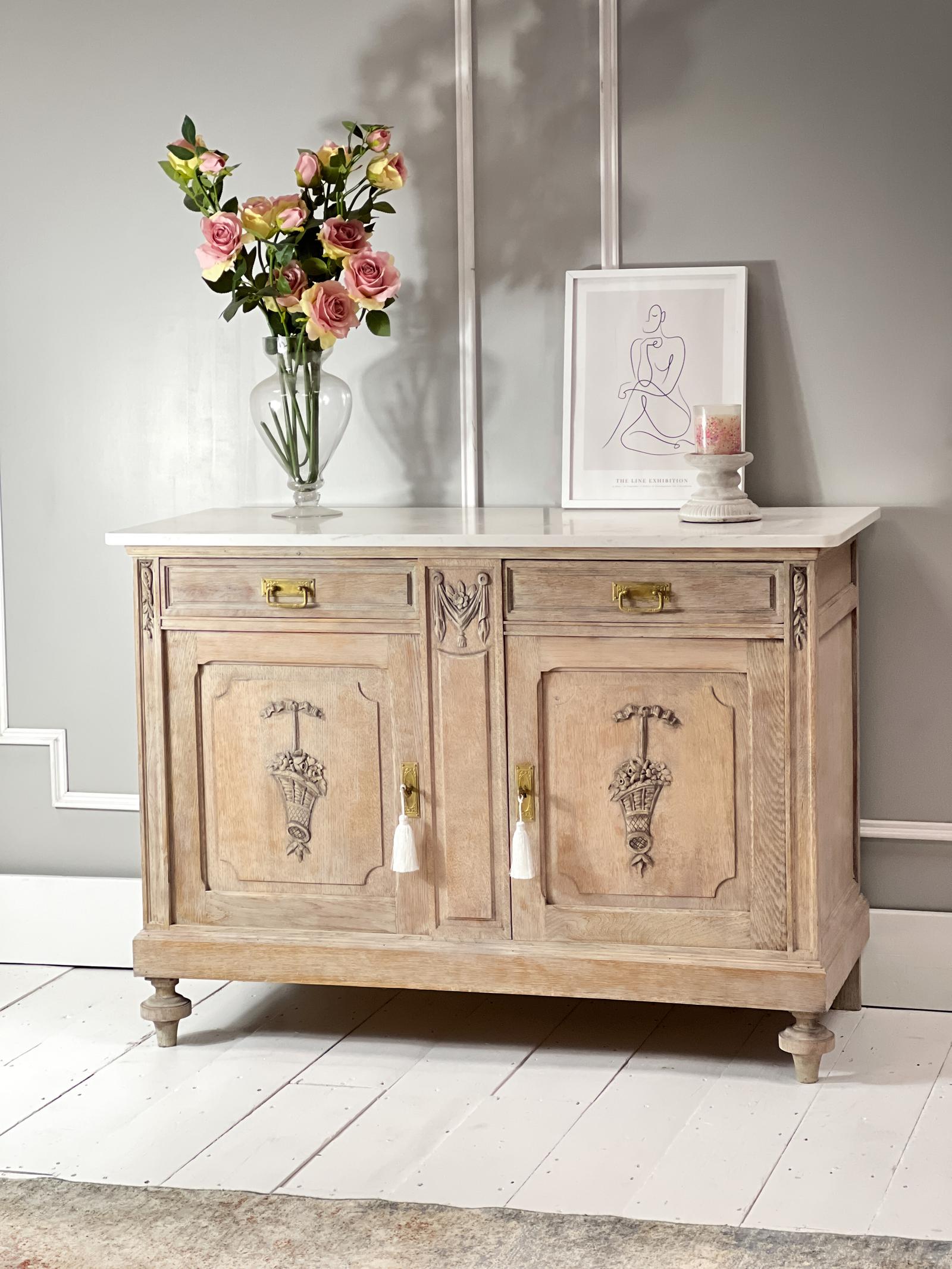 French Antique Marble Sideboard / Provincial Washstand / Cupboard