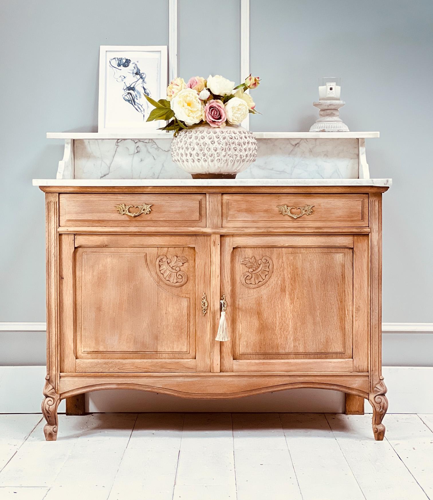 French Antique Marble Sideboard / Provincial Washstand / Cupboard