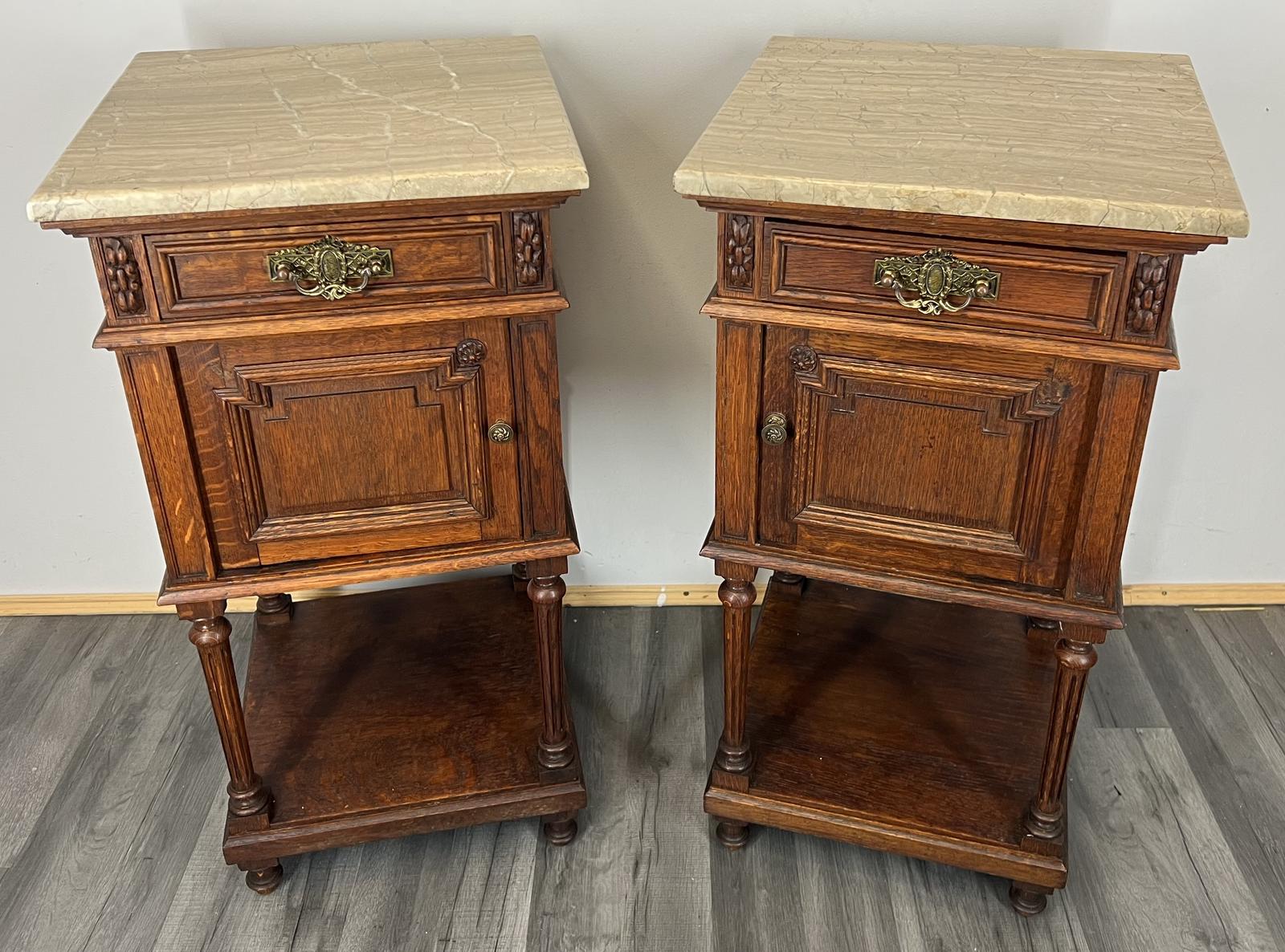 French Antique Marble Top Bedside Tables Cabinets Vintage Pair Nightstands