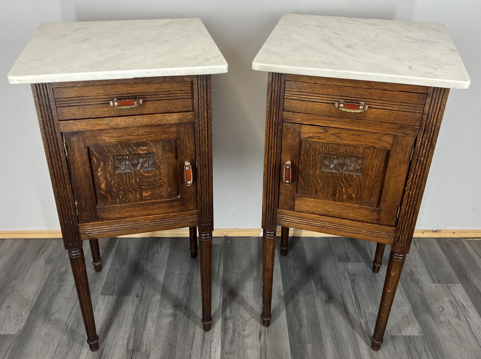 French Antique Marble Top Bedside Tables Cabinets Vintage Pair Nightstands (1 of 18)