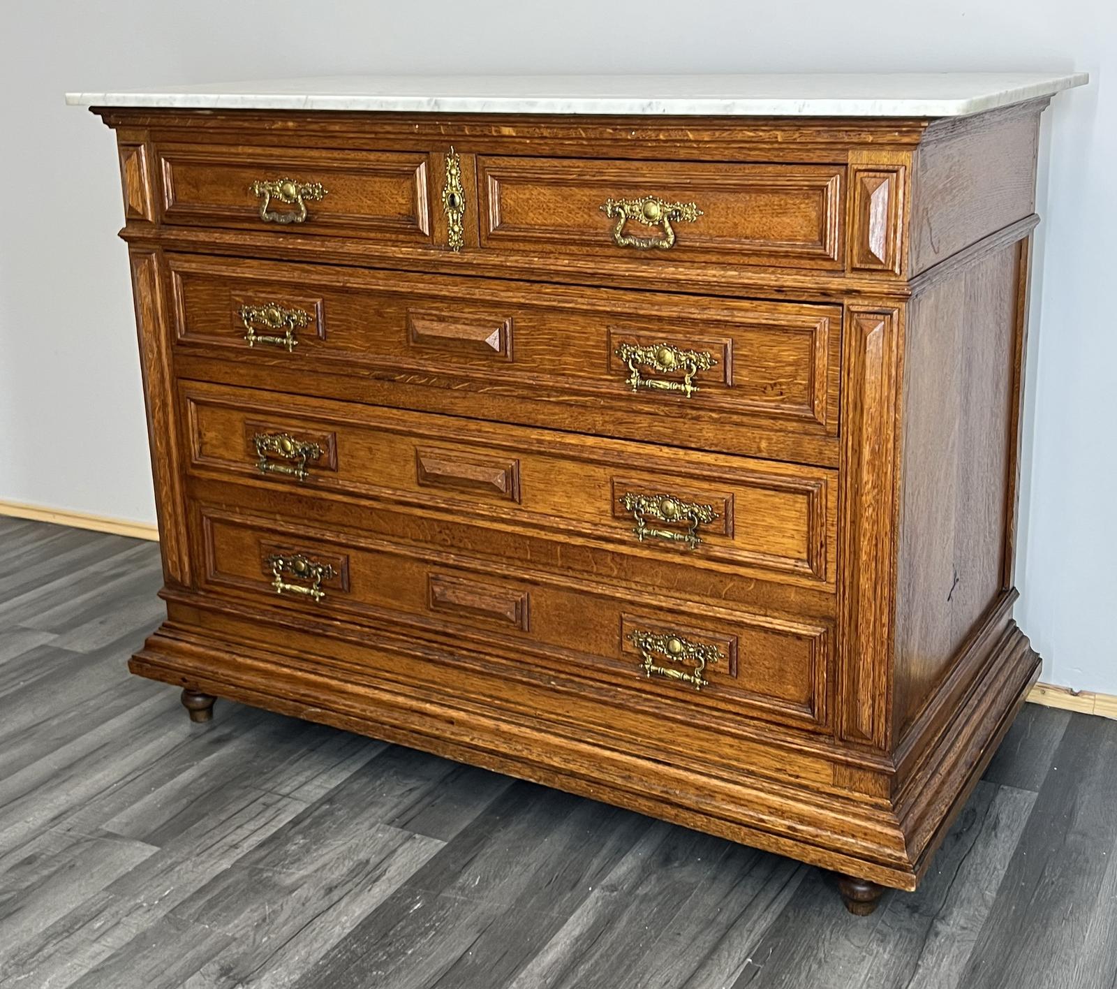 French Antique Marble Topped Chest of Drawers