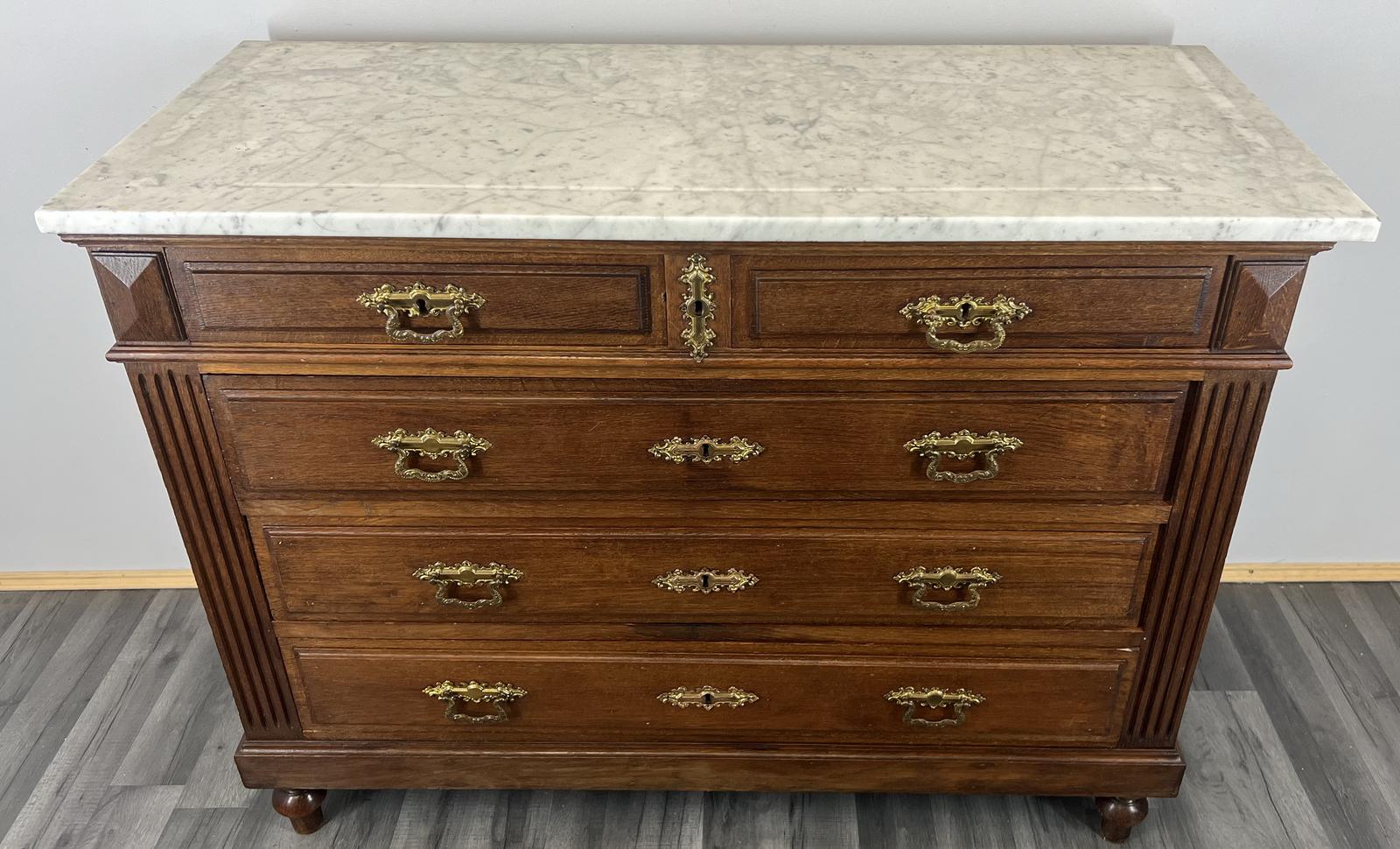 French Antique Marble Topped Chest of Drawers