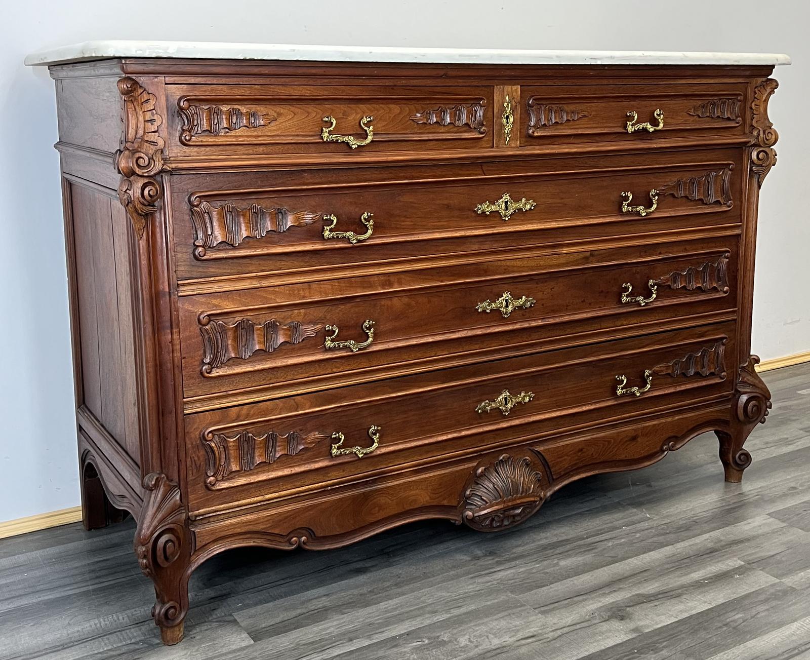 French Antique Marble Topped Chest of Drawers Sideboard Washstand